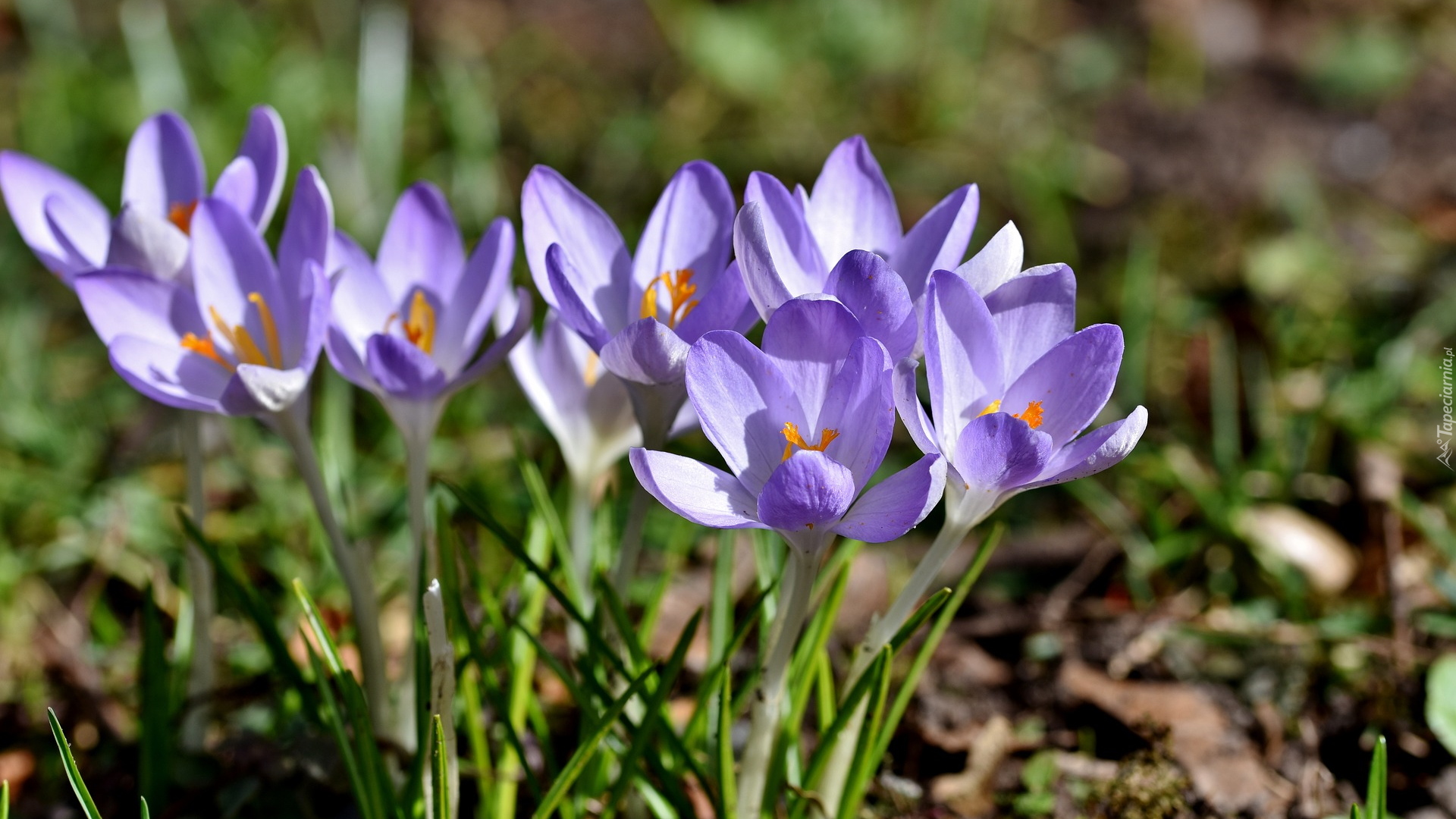 Edytor tapety: Rozświetlone krokusy w słońcu