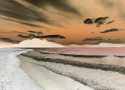 Edytor tapety: Białe chmury nad górami i jeziorem