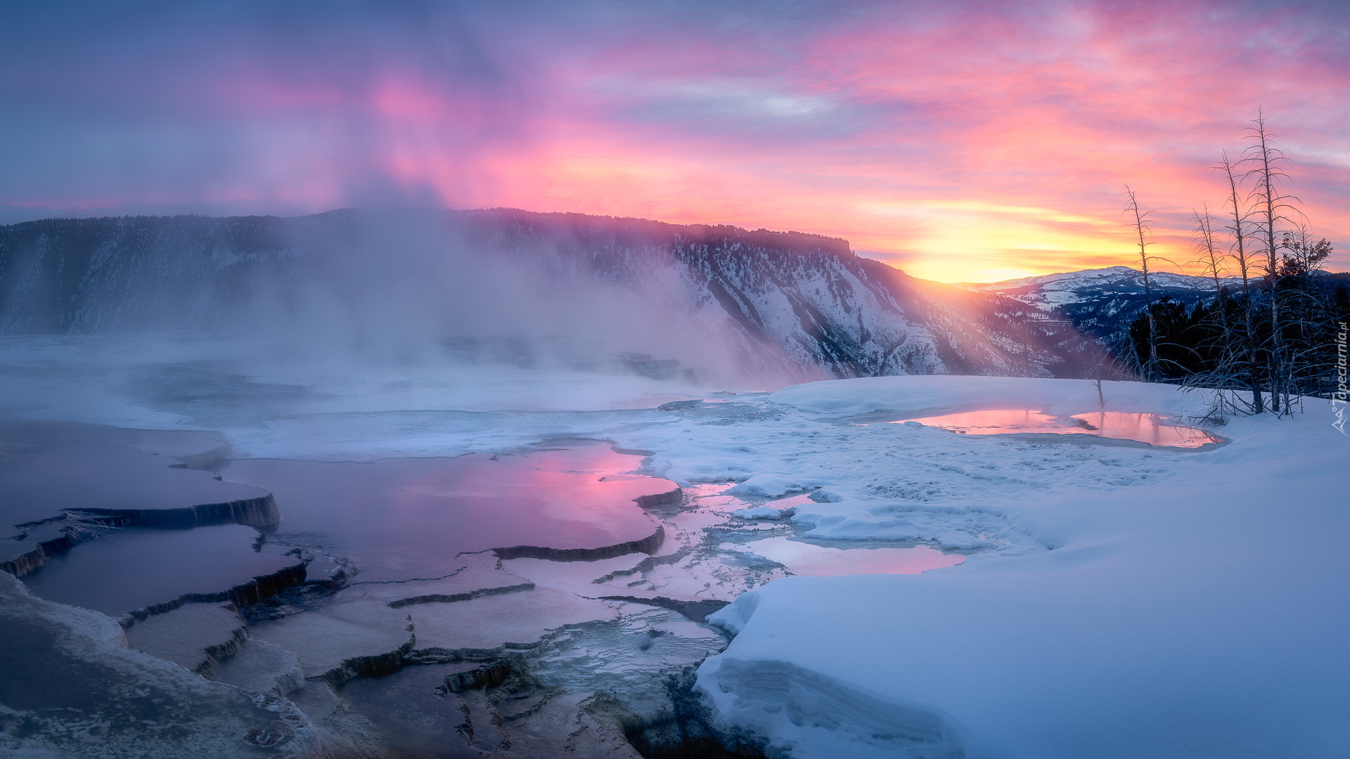 Edytor tapety: Wschód słońca nad Parkiem Narodowym Yellowstone