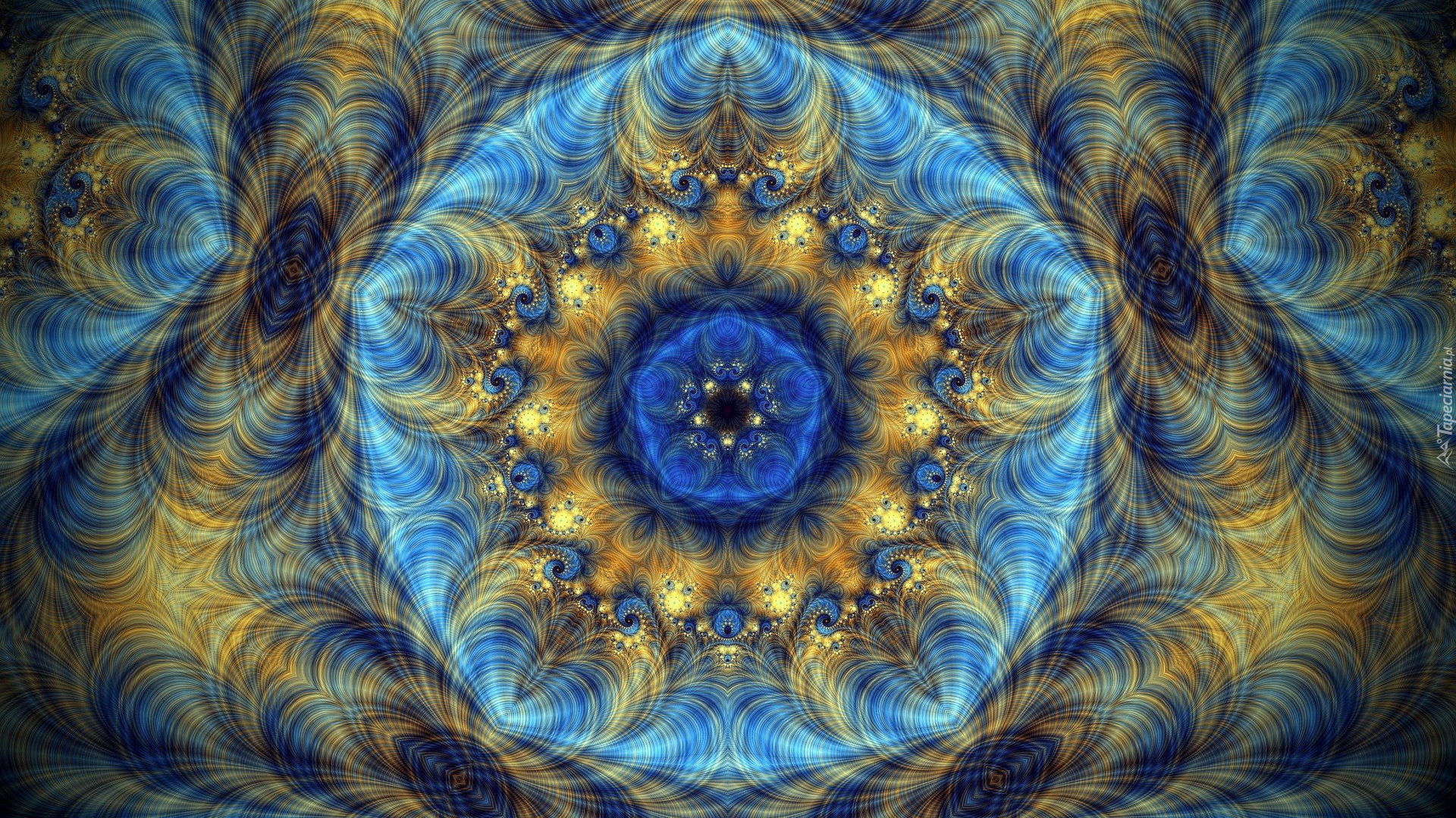 Edytor tapety: Niebiesko-złota rozeta w grafice fraktal