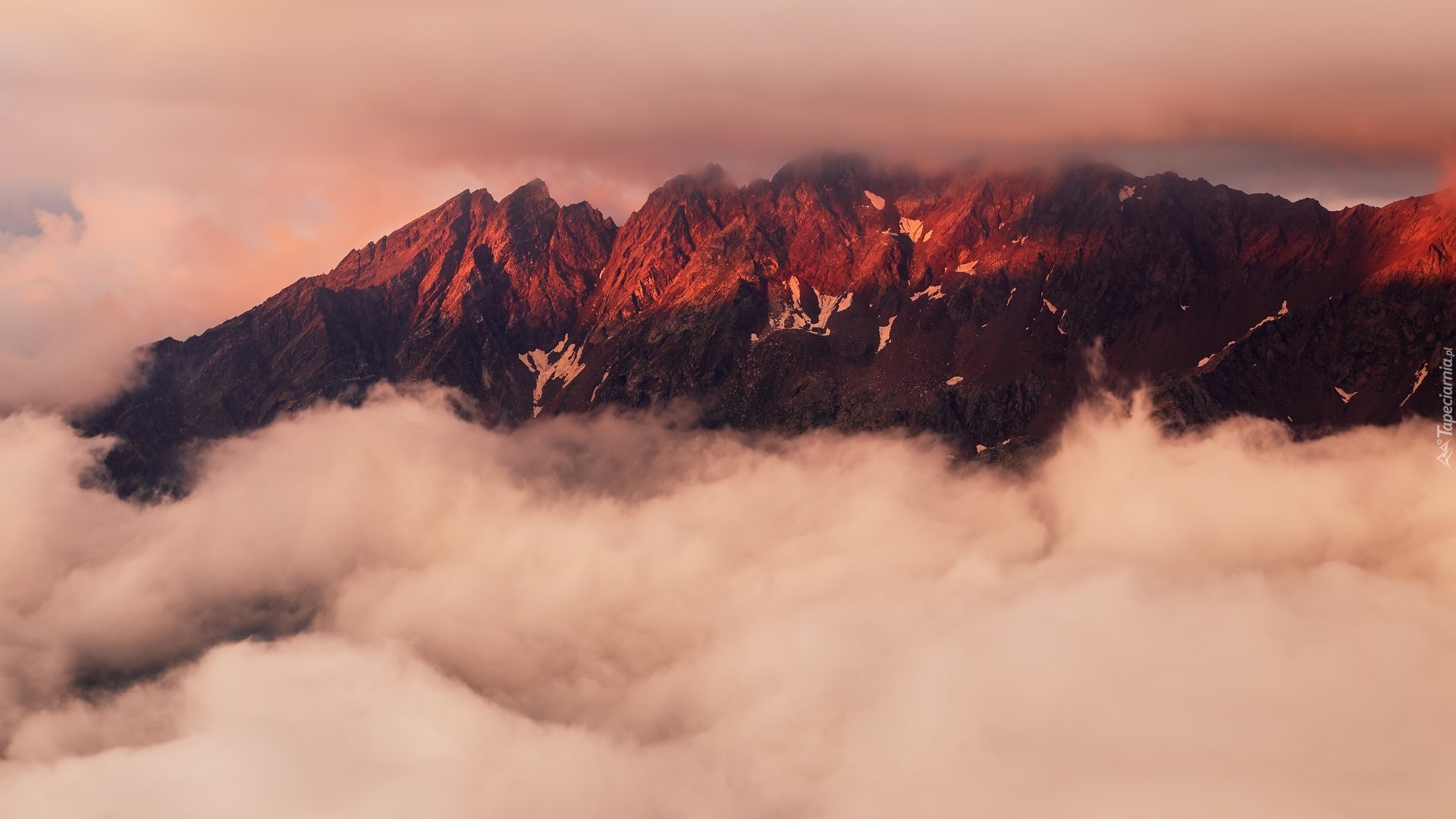 Edytor tapety: Górskie szczyty Pietra Rossa spowite chmurami