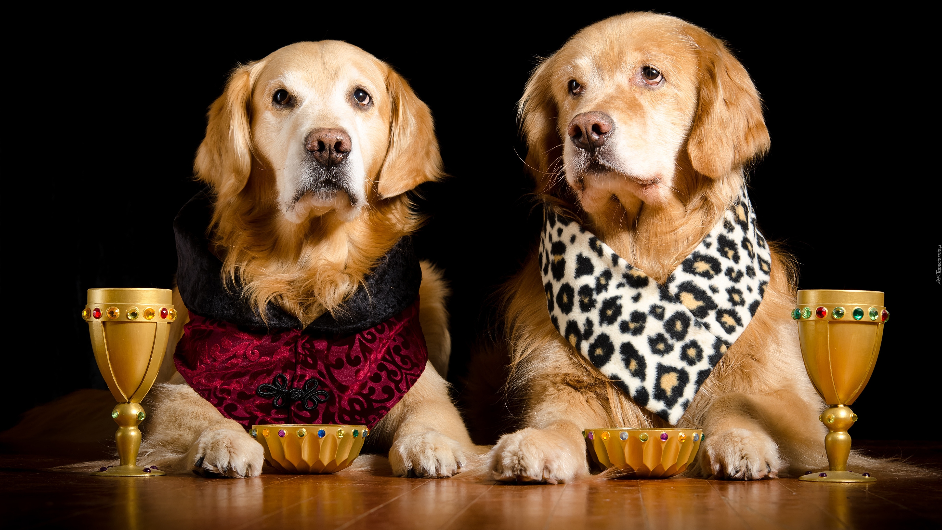 Edytor tapety: Dwa golden retrievery obok kieliszków