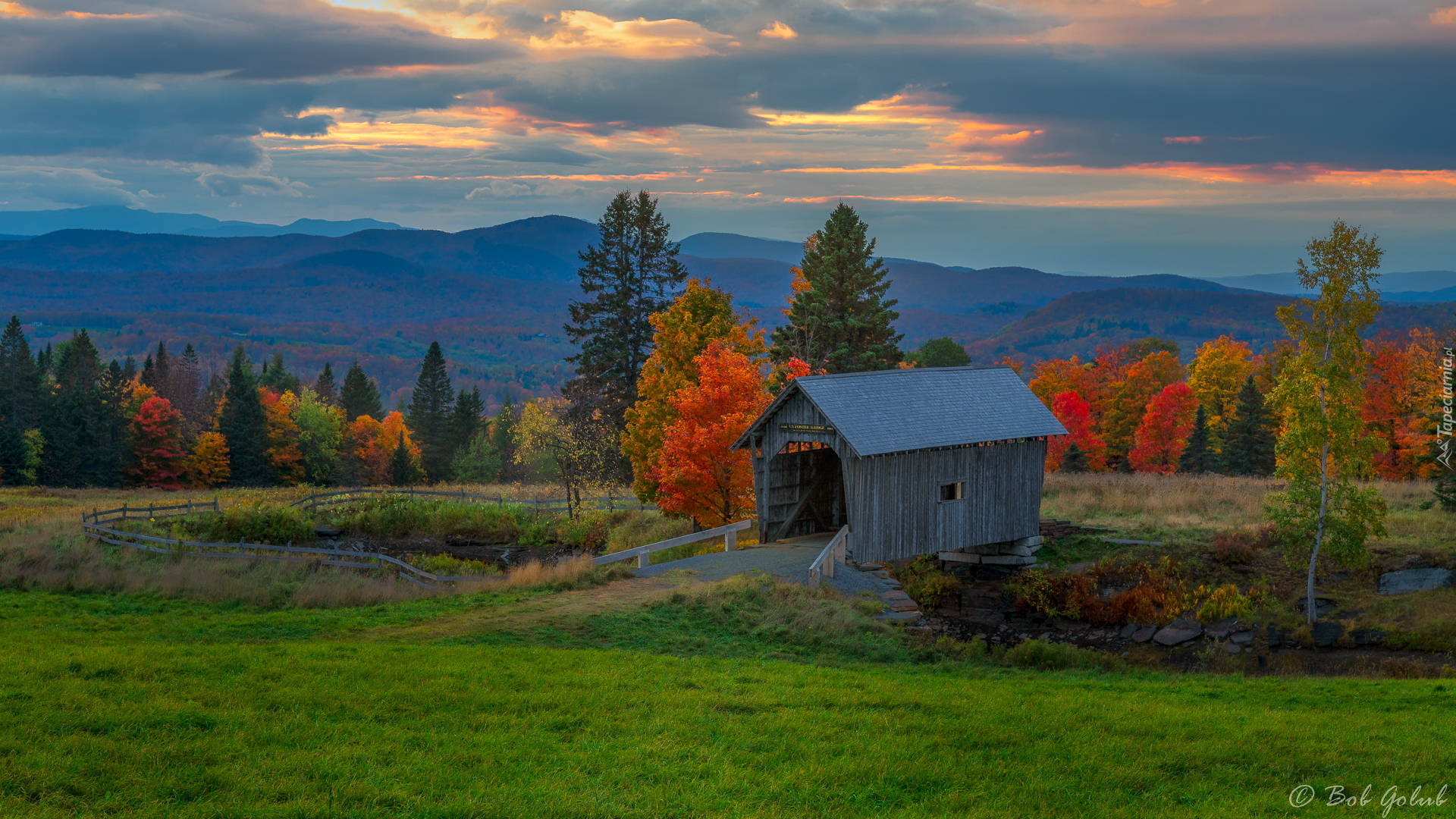 Edytor tapety: Kryty most AM Foster Covered Bridge w Cabot
