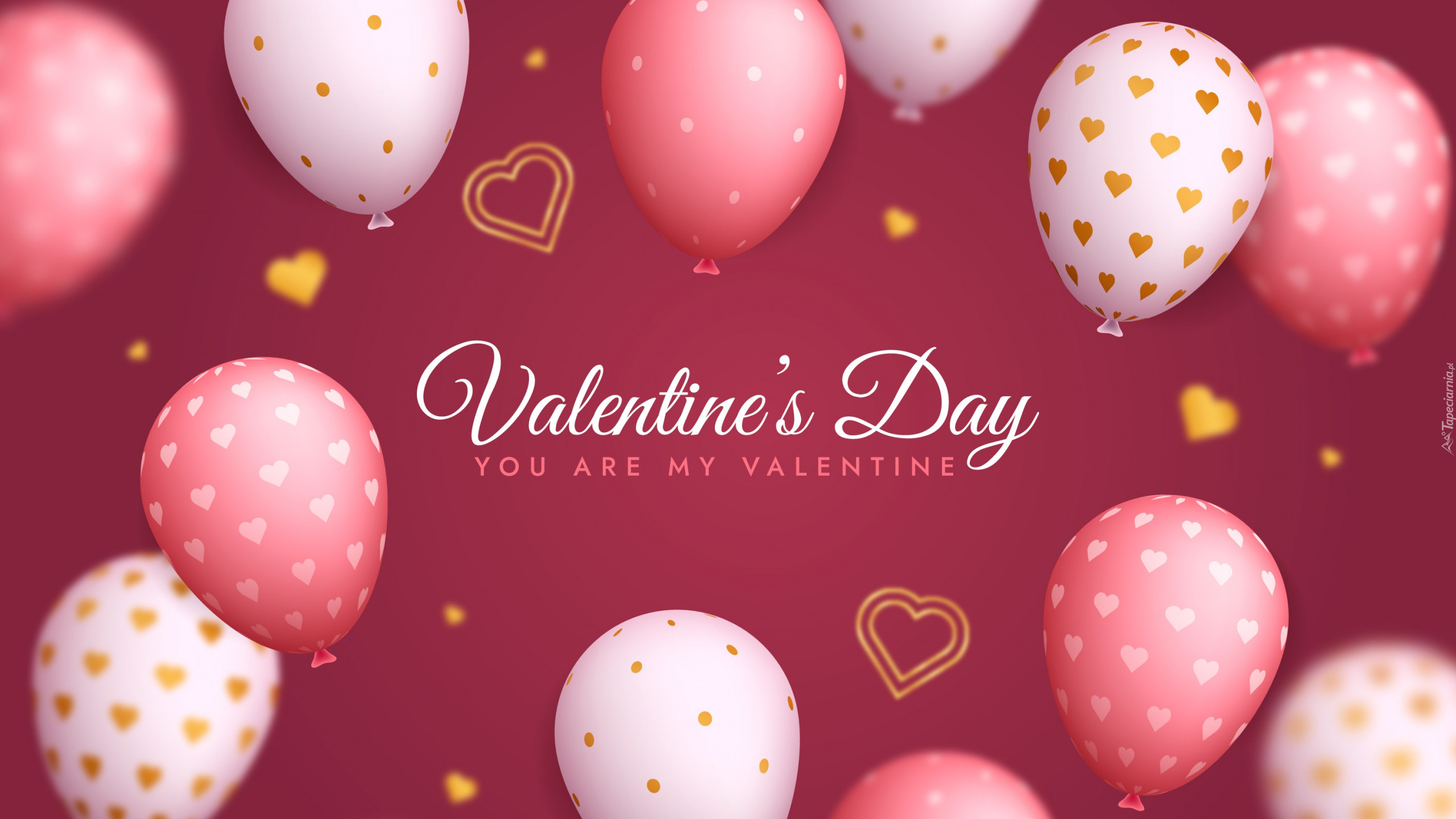 Edytor tapety: Życzenia walentynkowe na różowym tle z balonami