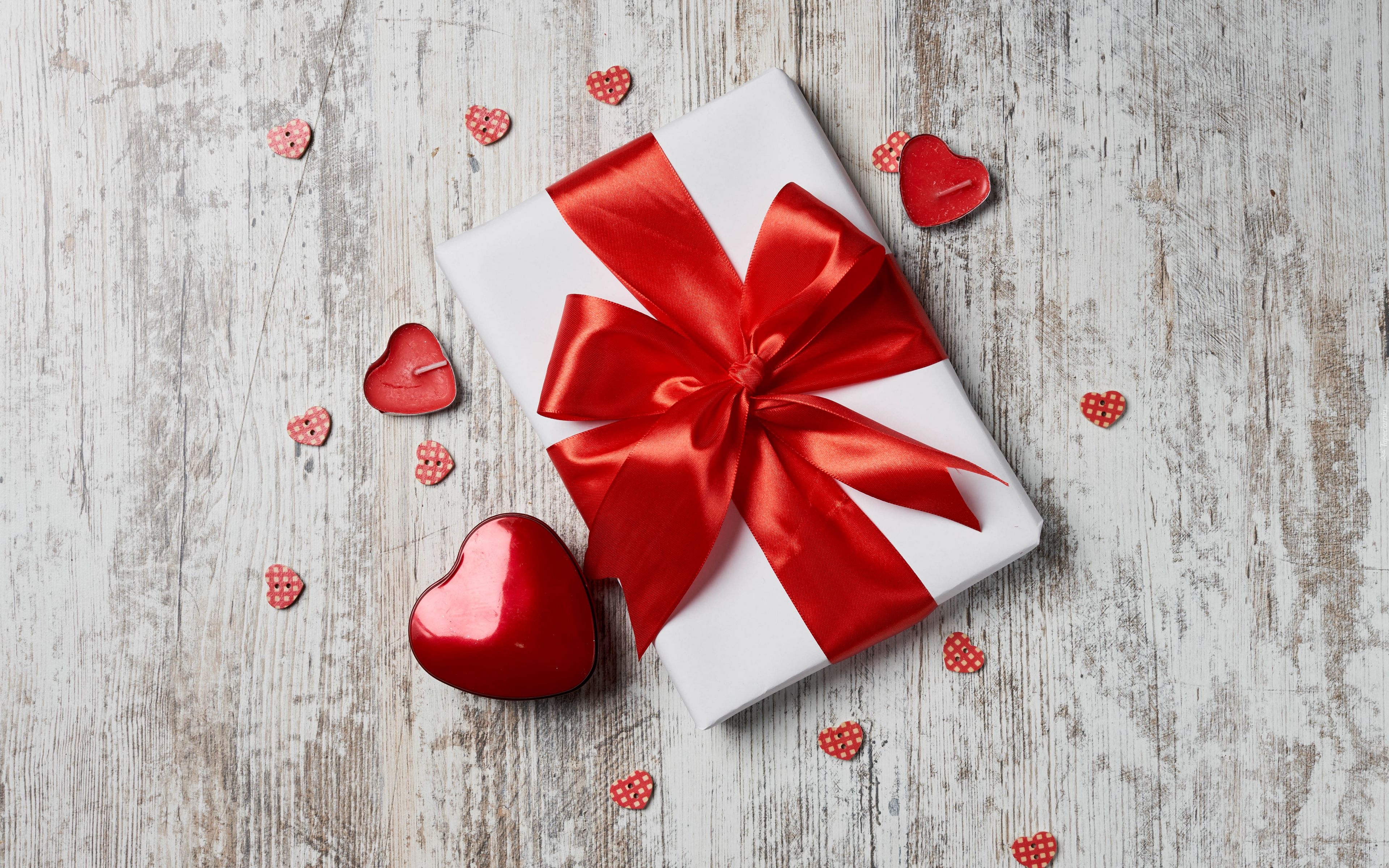 Edytor tapety: Serduszka obok prezentu z czerwoną kokardą