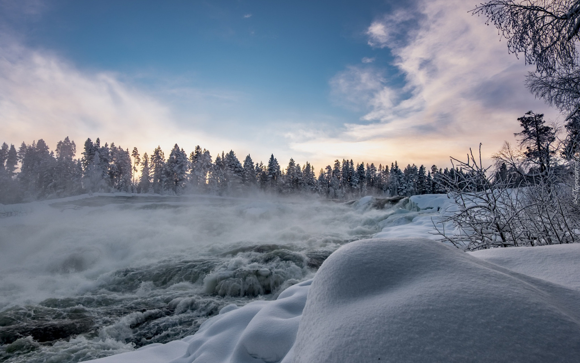 Edytor tapety: Rwąca rzeka zimową porą