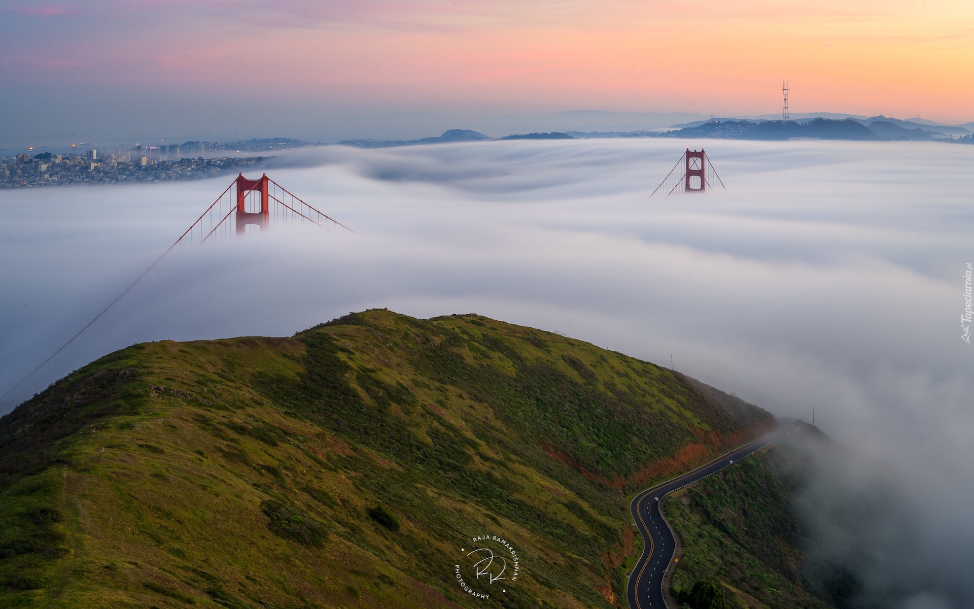 Edytor tapety: Most Golden Gate Bridge w gęstej mgle