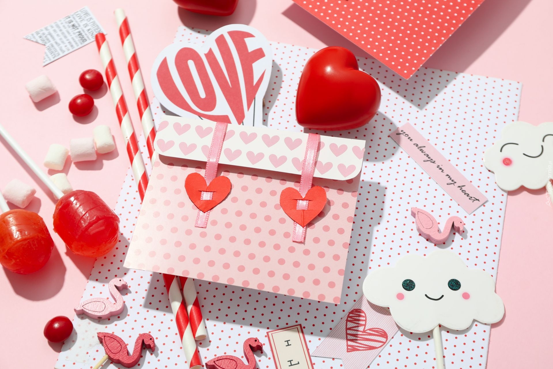Edytor tapety: Walentynka obok lizaków i serca