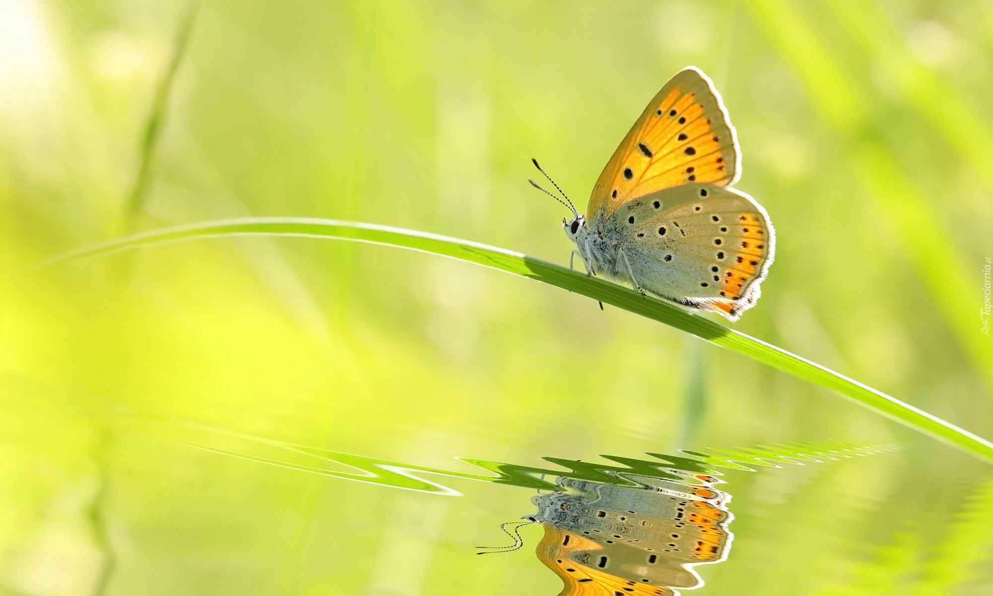 Edytor tapety: Motyl na źdźble trawy nad wodą