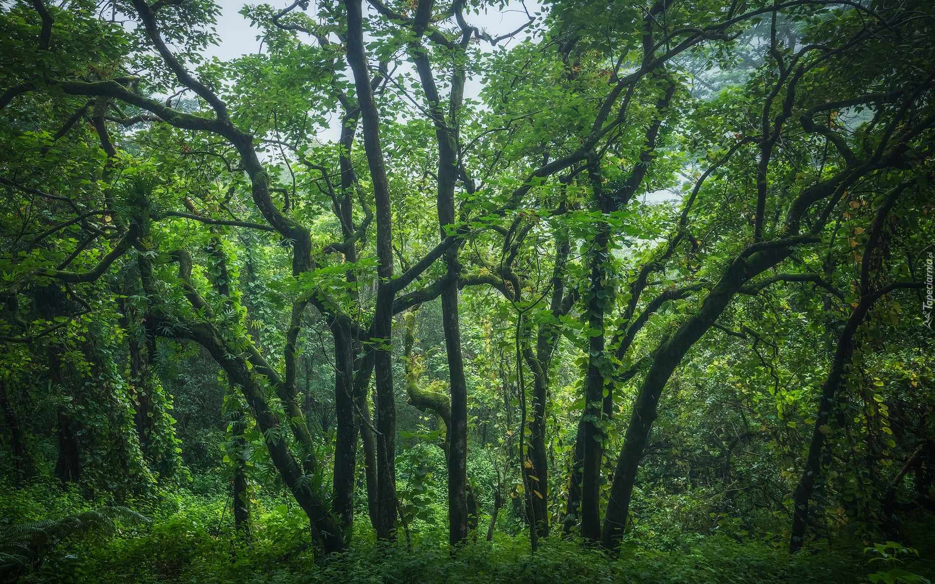 Edytor tapety: Roślinność pod zielonymi drzewami w lesie