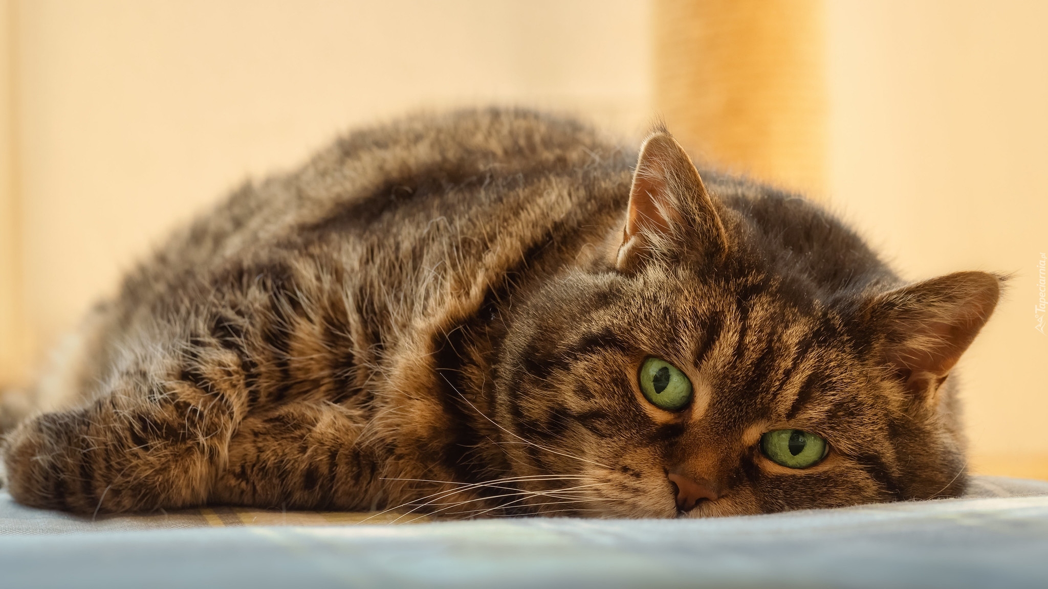 Edytor tapety: Leżący szaro-bury kot