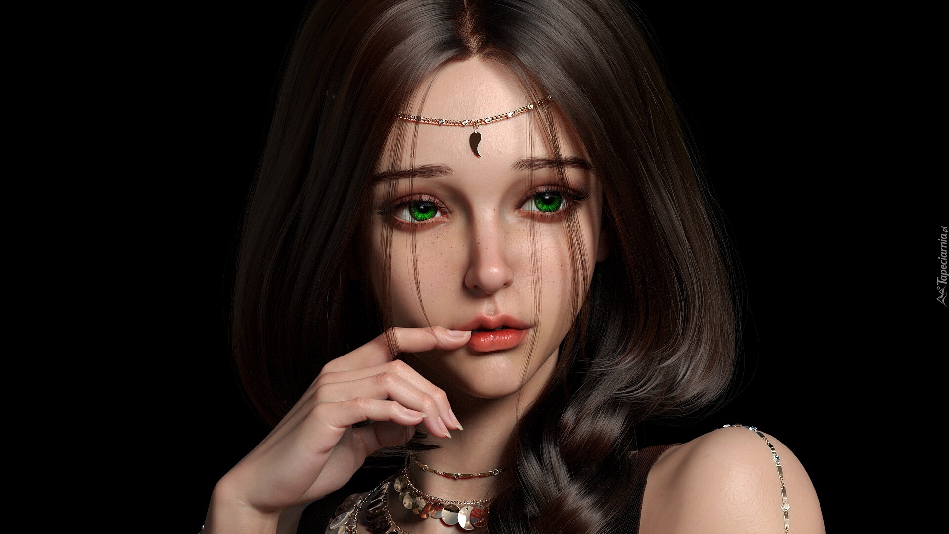 Edytor tapety: Zielonooka dziewczyna w grafice na ciemnym tle