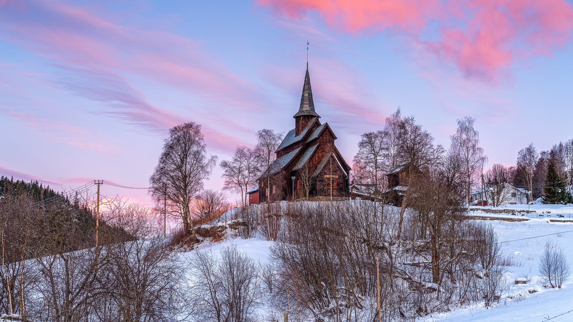 Edytor tapety: Drewniany kościół Hore Stave Church w Ryfoss