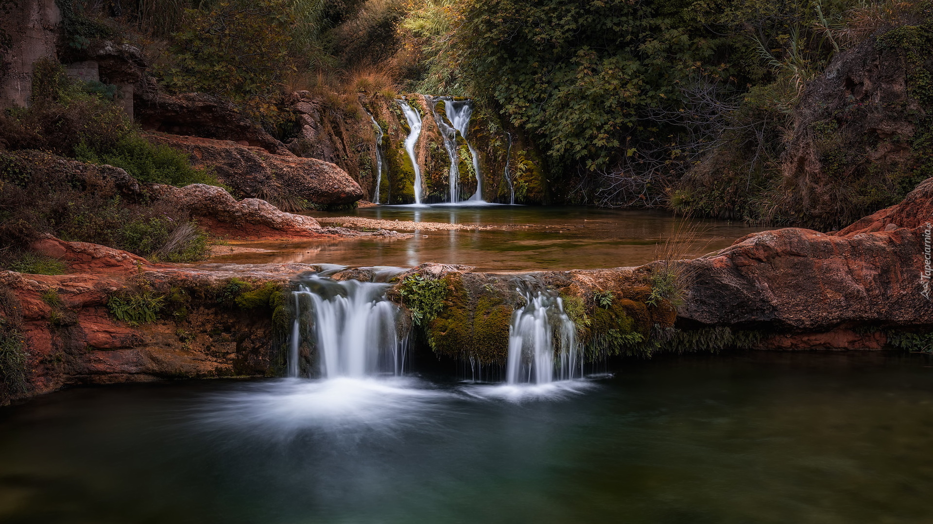 Edytor tapety: Wodospad na skałach i próg rzeczny