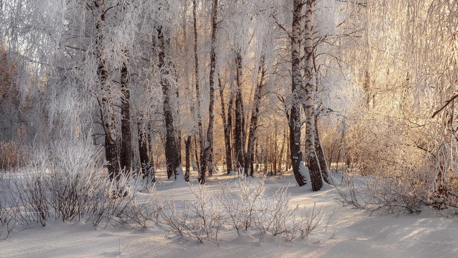 Edytor tapety: Rozświetlony słońcem zimowy las