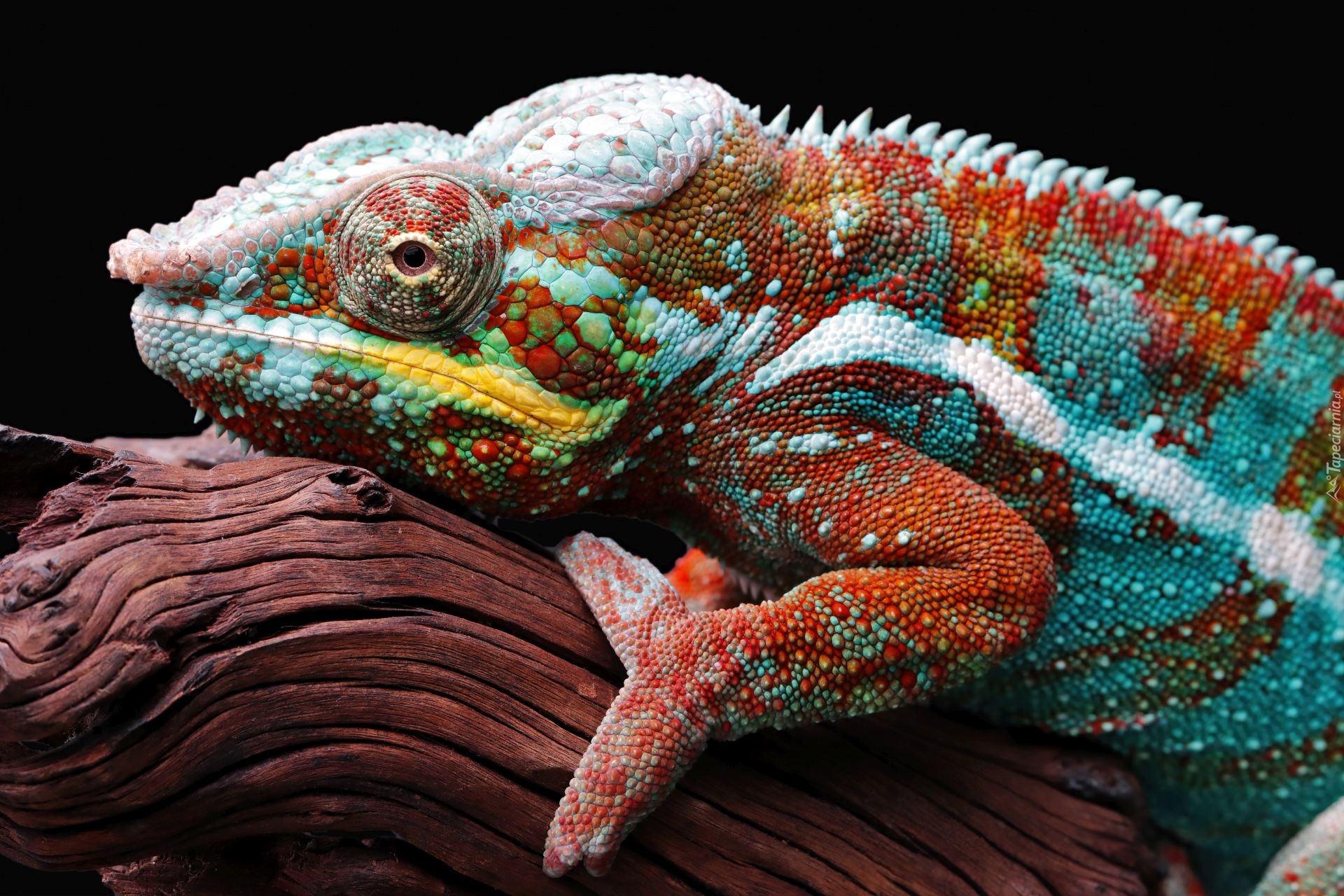 Edytor tapety: Kameleon lamparci na ciemnym tle