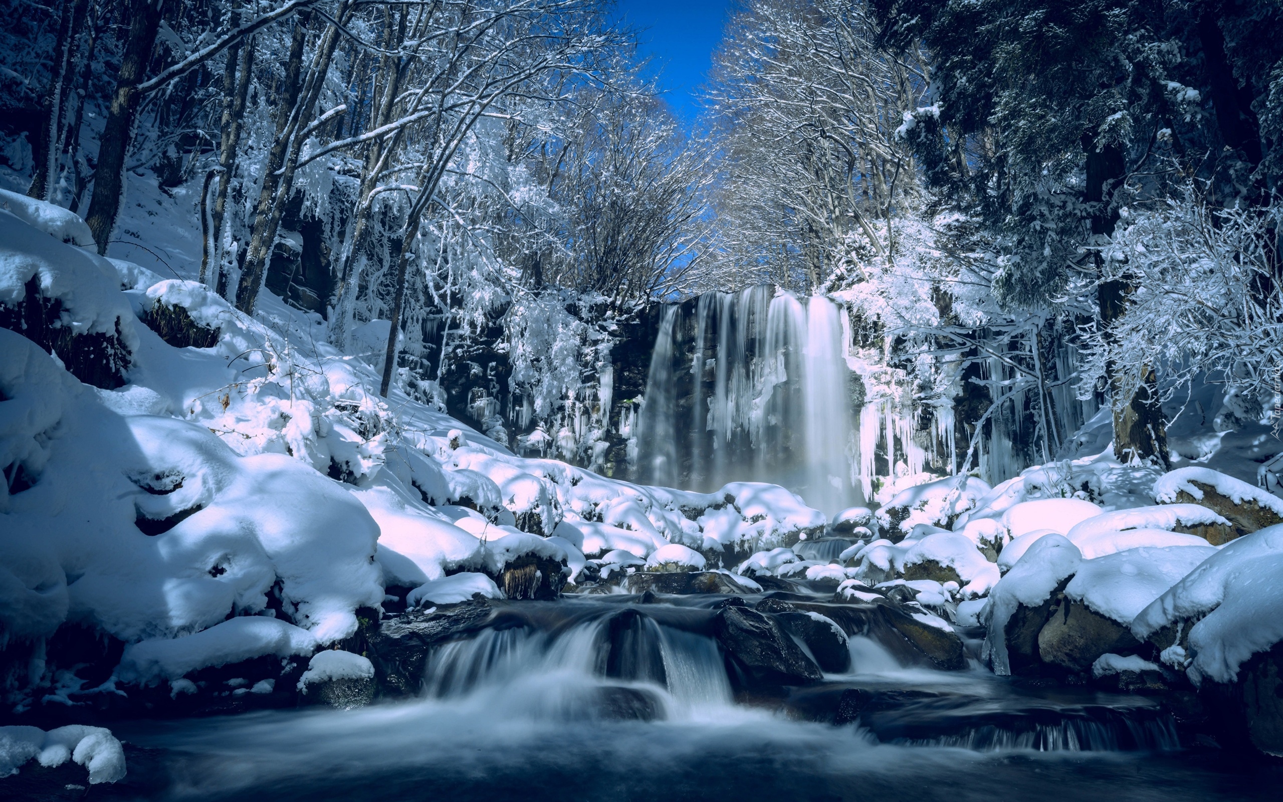 Edytor tapety: Wodospad w zimowej szacie