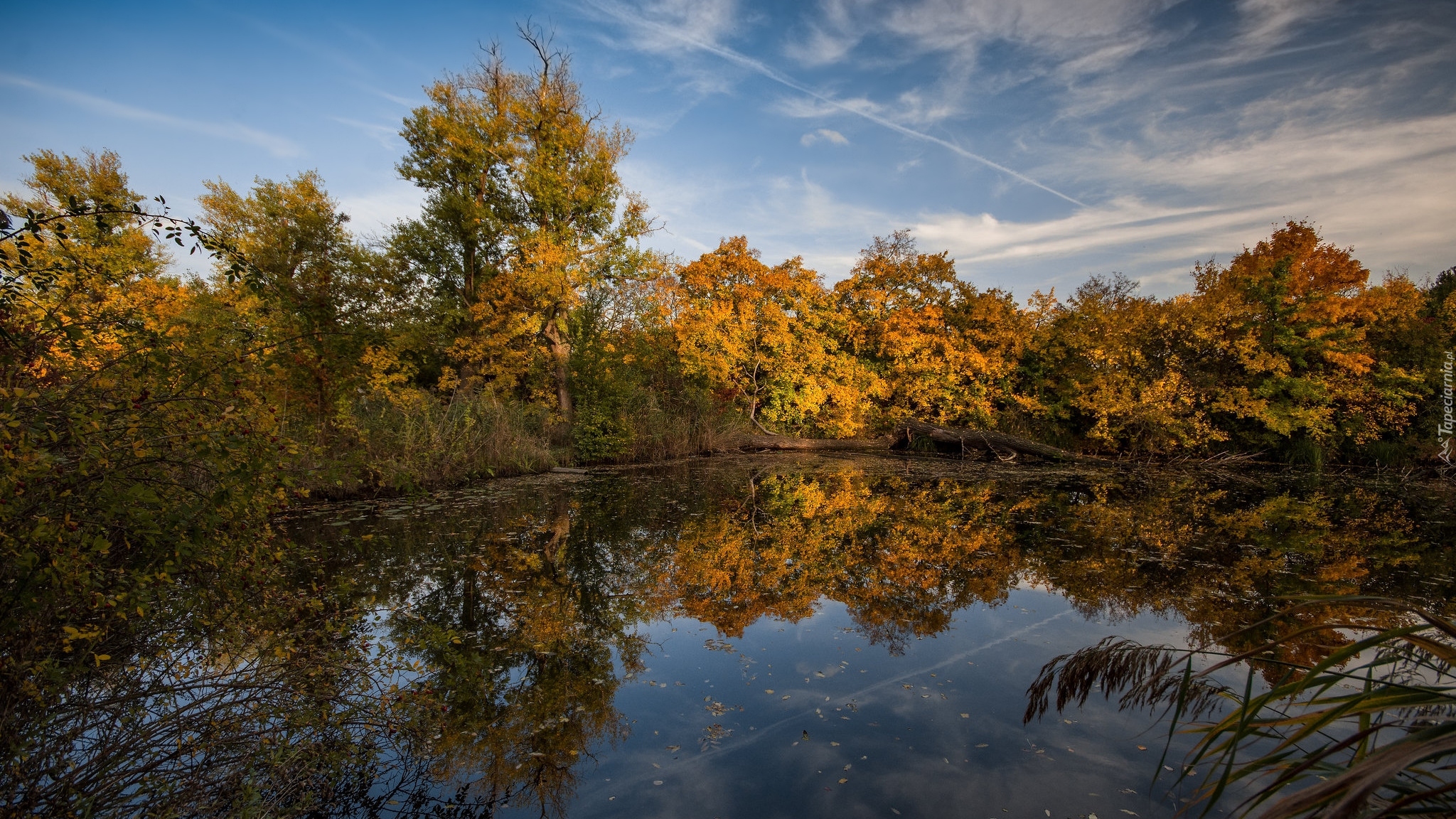Edytor tapety: Staw w otoczeniu pożółkłych drzew