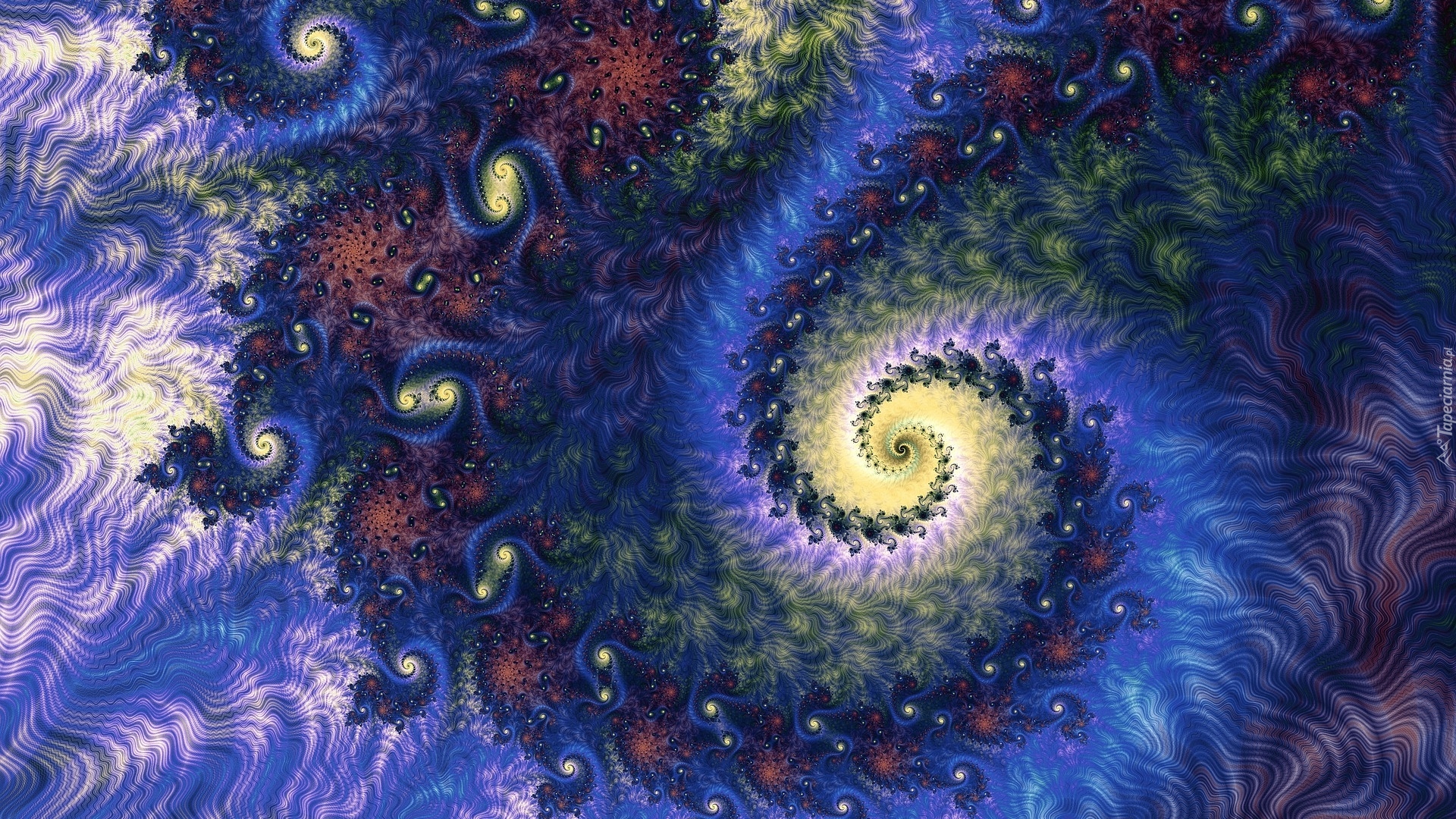 Edytor tapety: Spirala na niebieskim tle w grafice fraktal