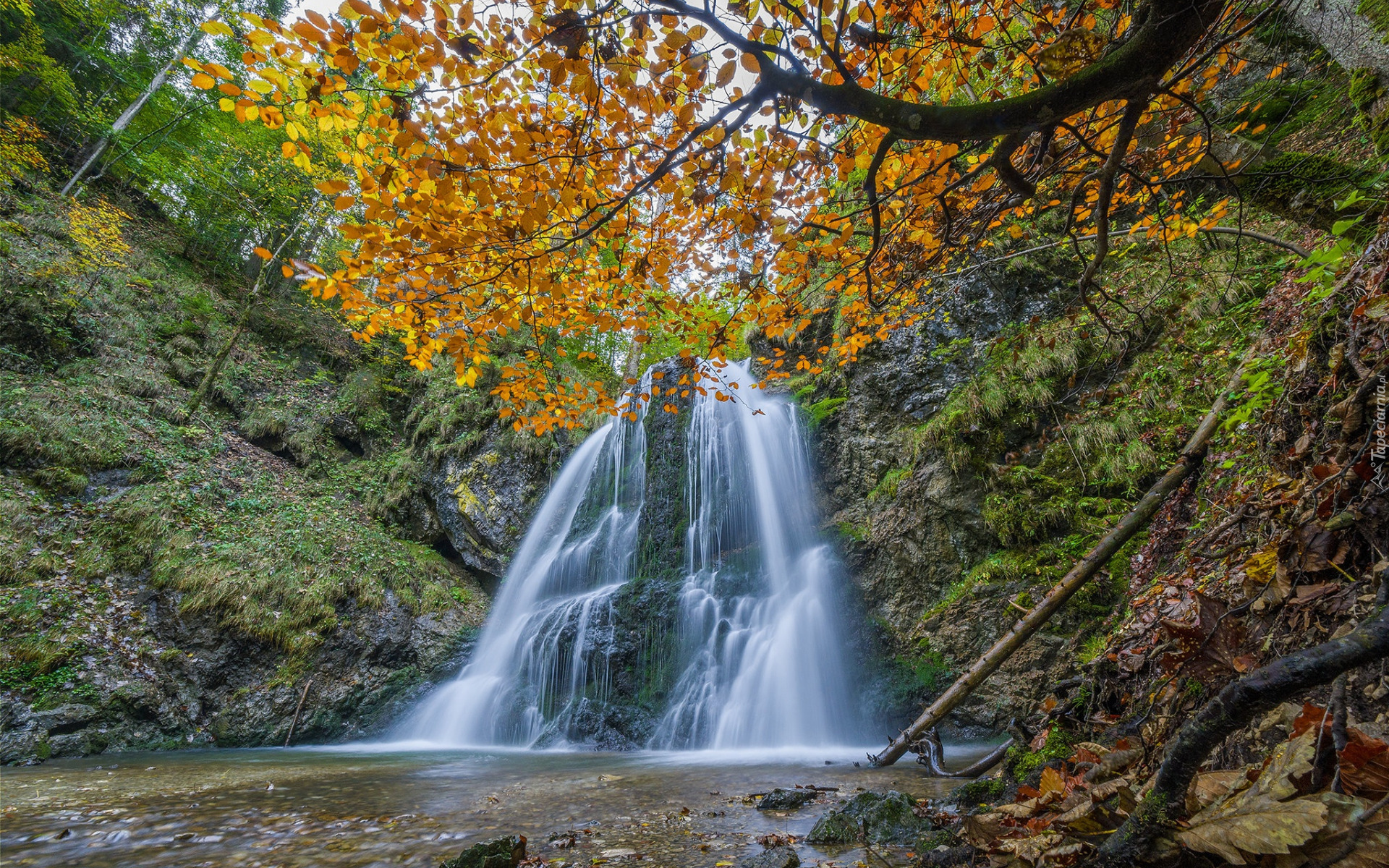 Edytor tapety: Wodospad Josefsthaler Waterfalls w Bawarii