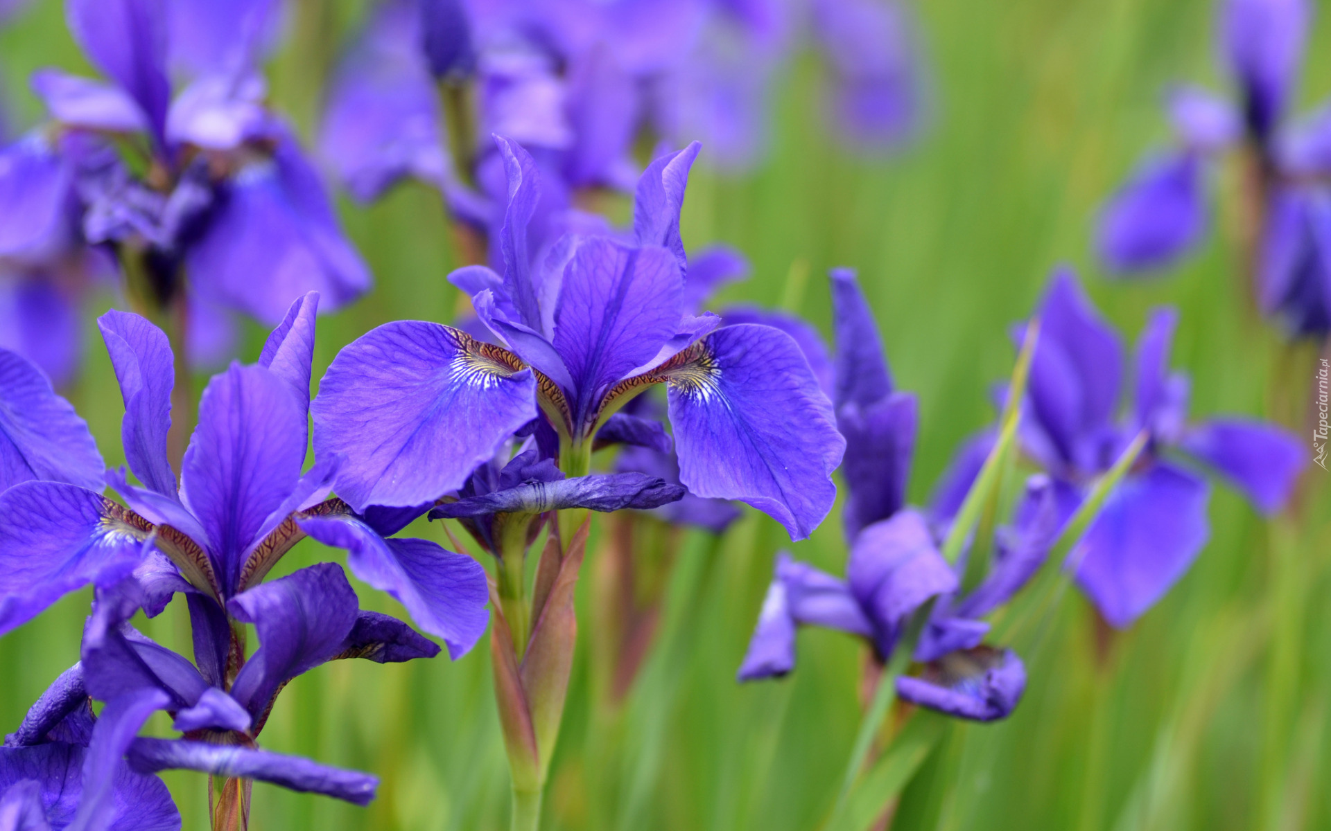 Edytor tapety: Irysy niebieskie na zielonym tle