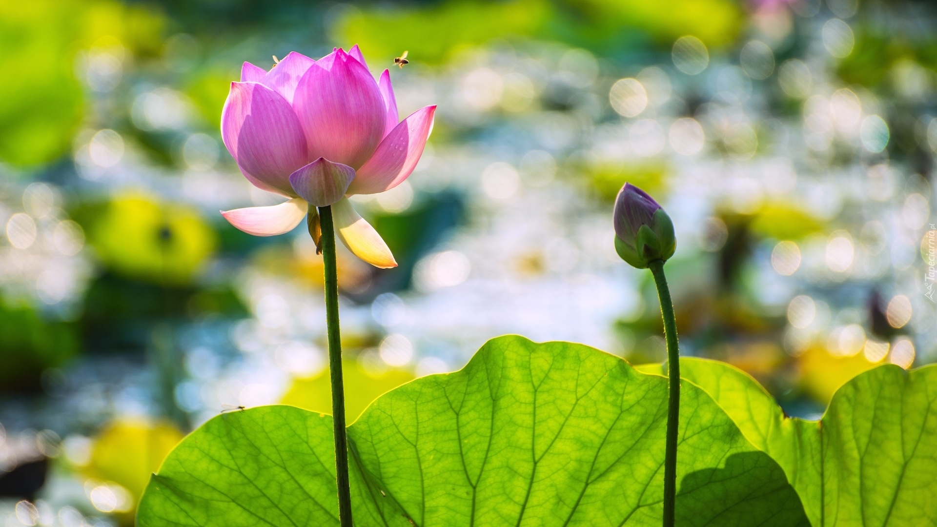 Edytor tapety: Kwiat lotosu z pąkiem w liściach