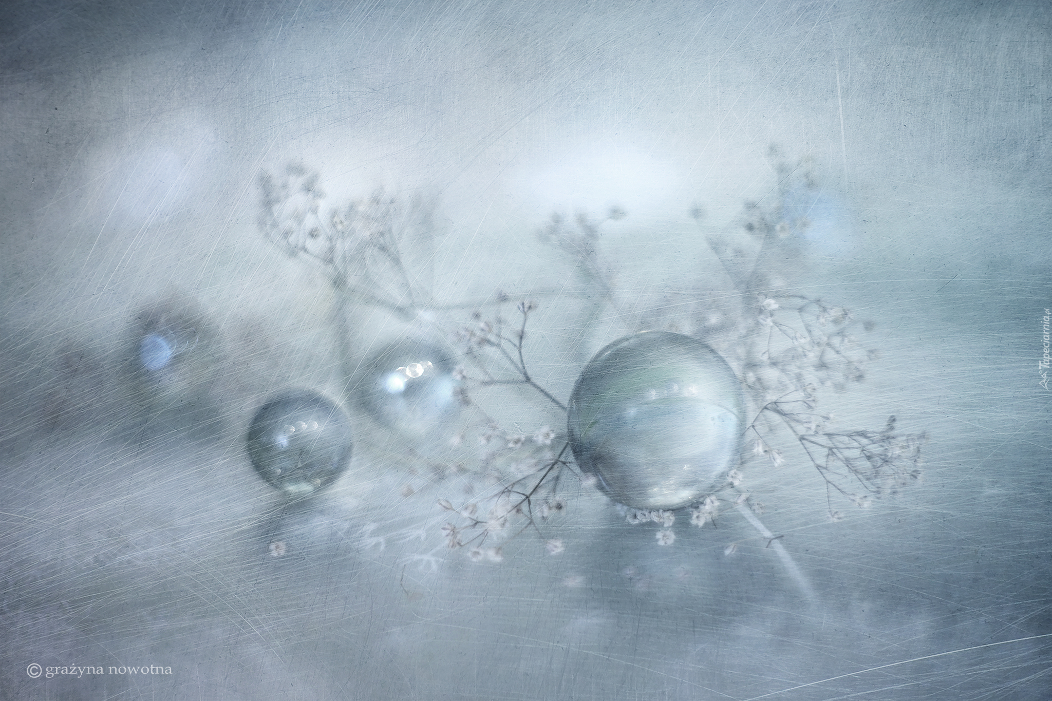 Edytor tapety: Szklane kulki i suche rośliny w kompozycji