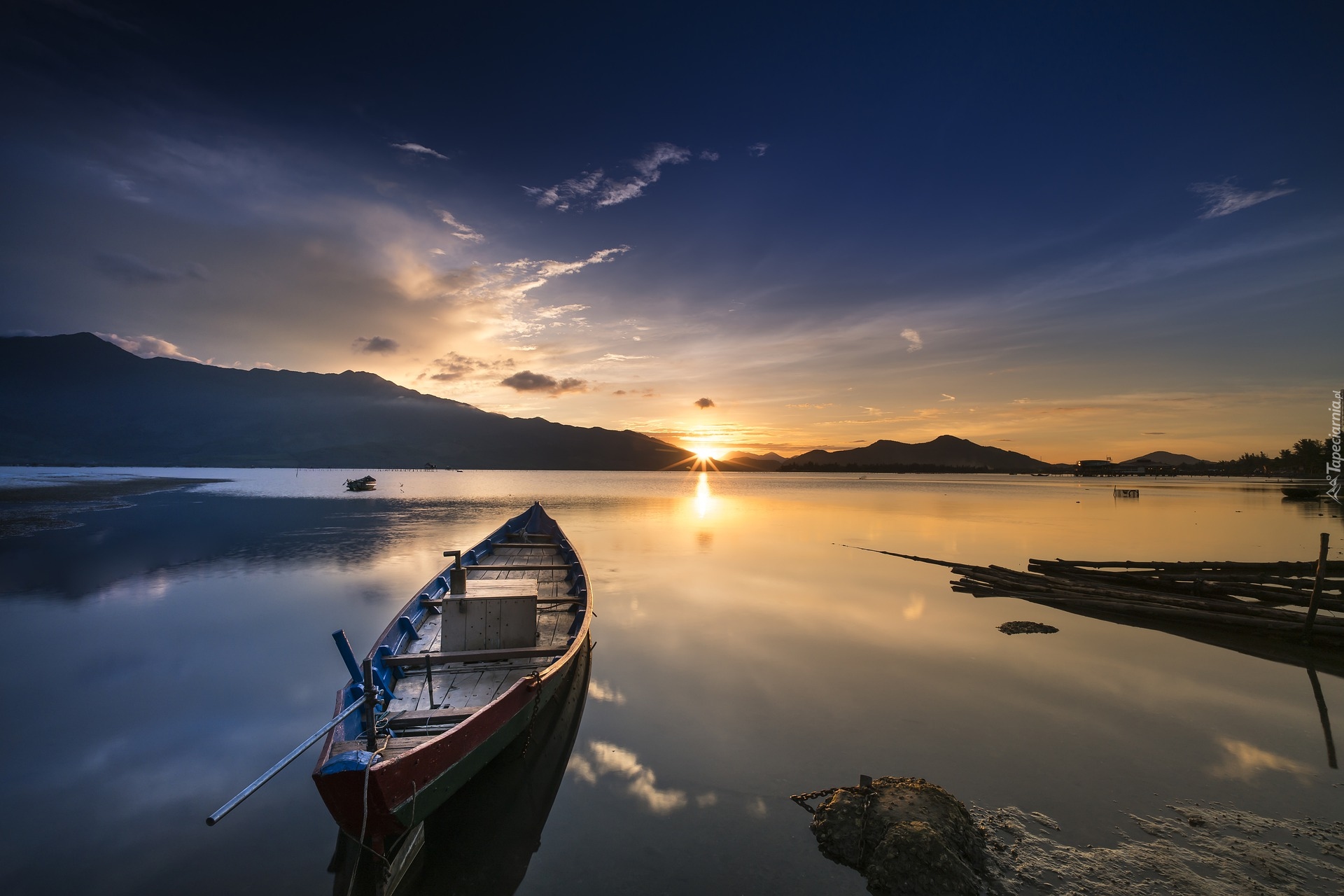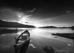 Edytor tapety: Pusta łódka na jeziorze