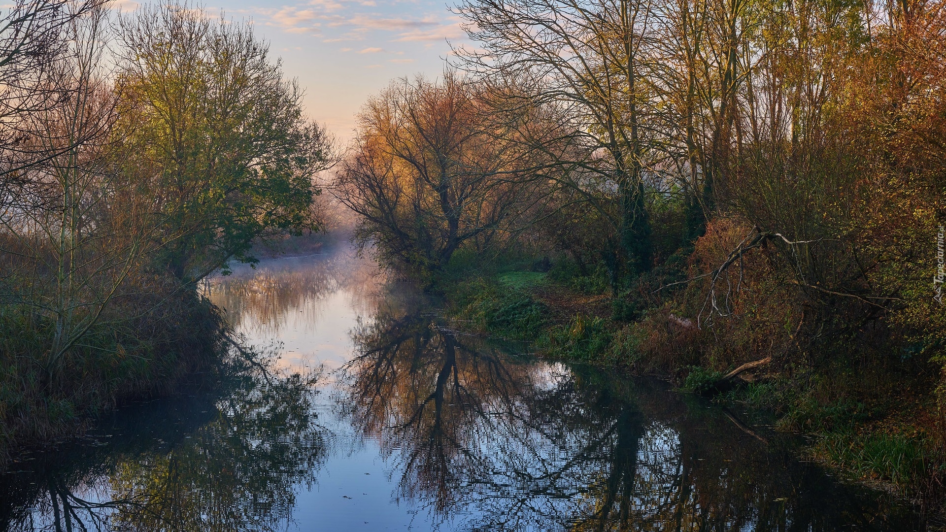 Edytor tapety: Odbicie jesiennych drzew w rzece