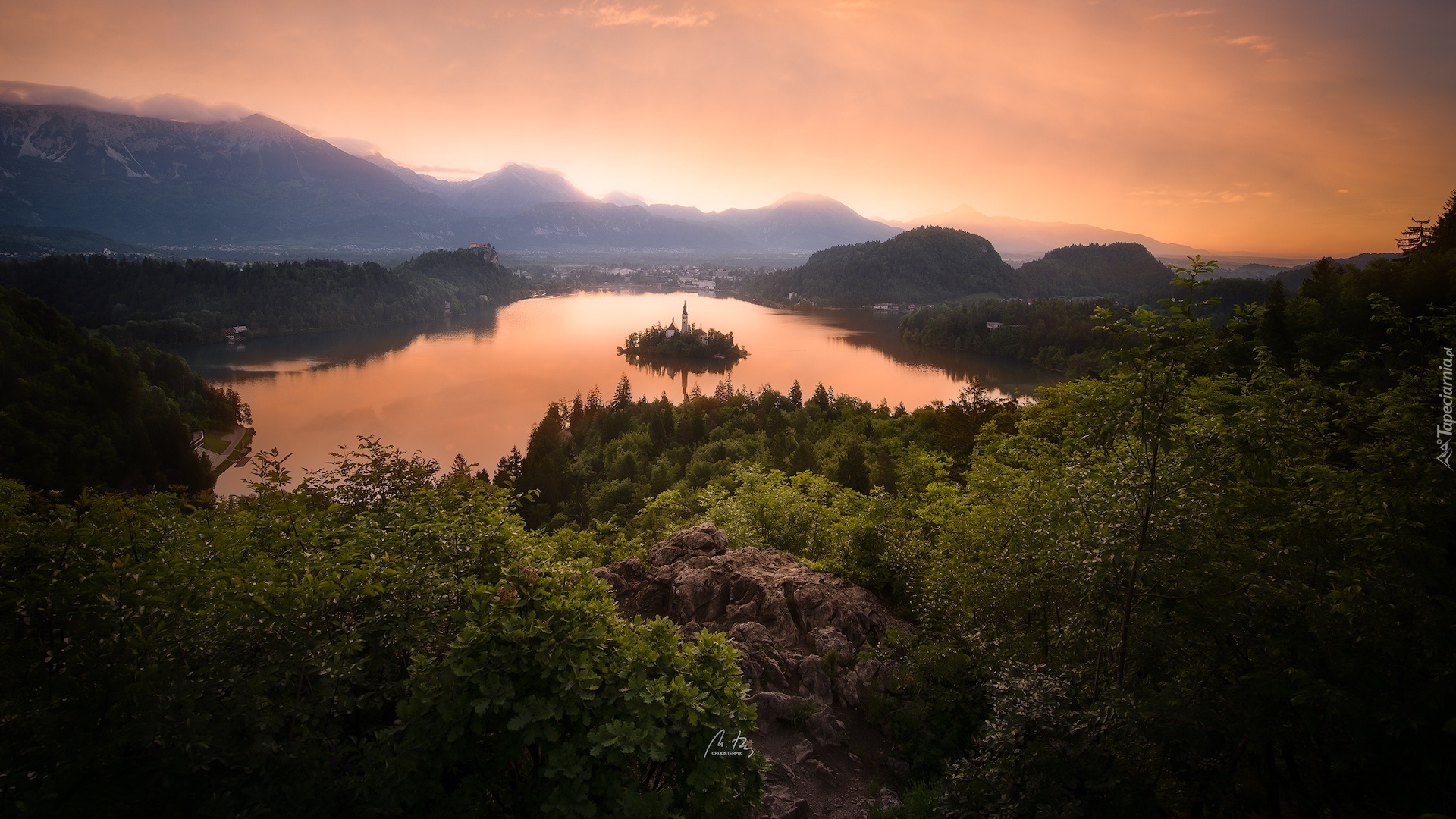 Edytor tapety: Widok na wyspę Blejski Otok na jeziorze Bled