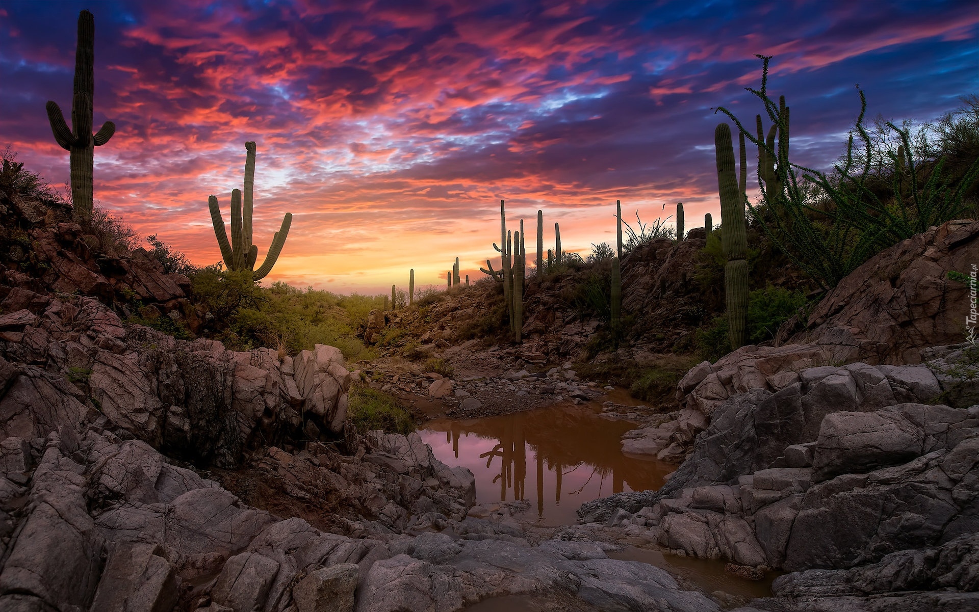 Edytor tapety: Zachód słońca w Parku Narodowym Saguaro