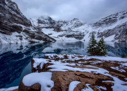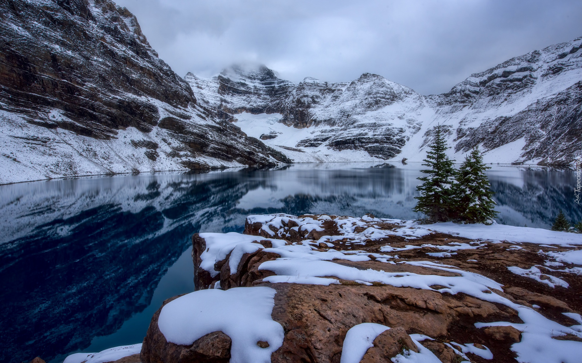 Edytor tapety: Widok znad jeziora Lake McArthur na ośnieżone góry