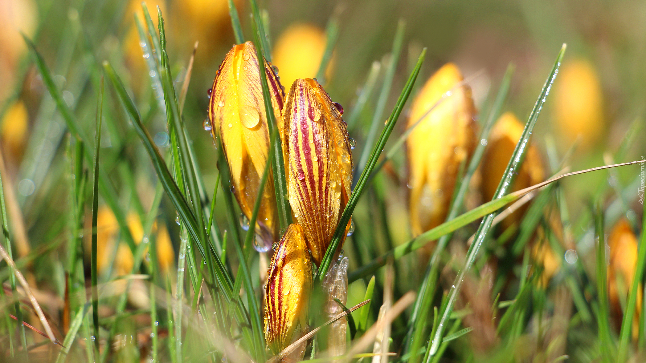 Edytor tapety: Kropelki wody na pąkach krokusów
