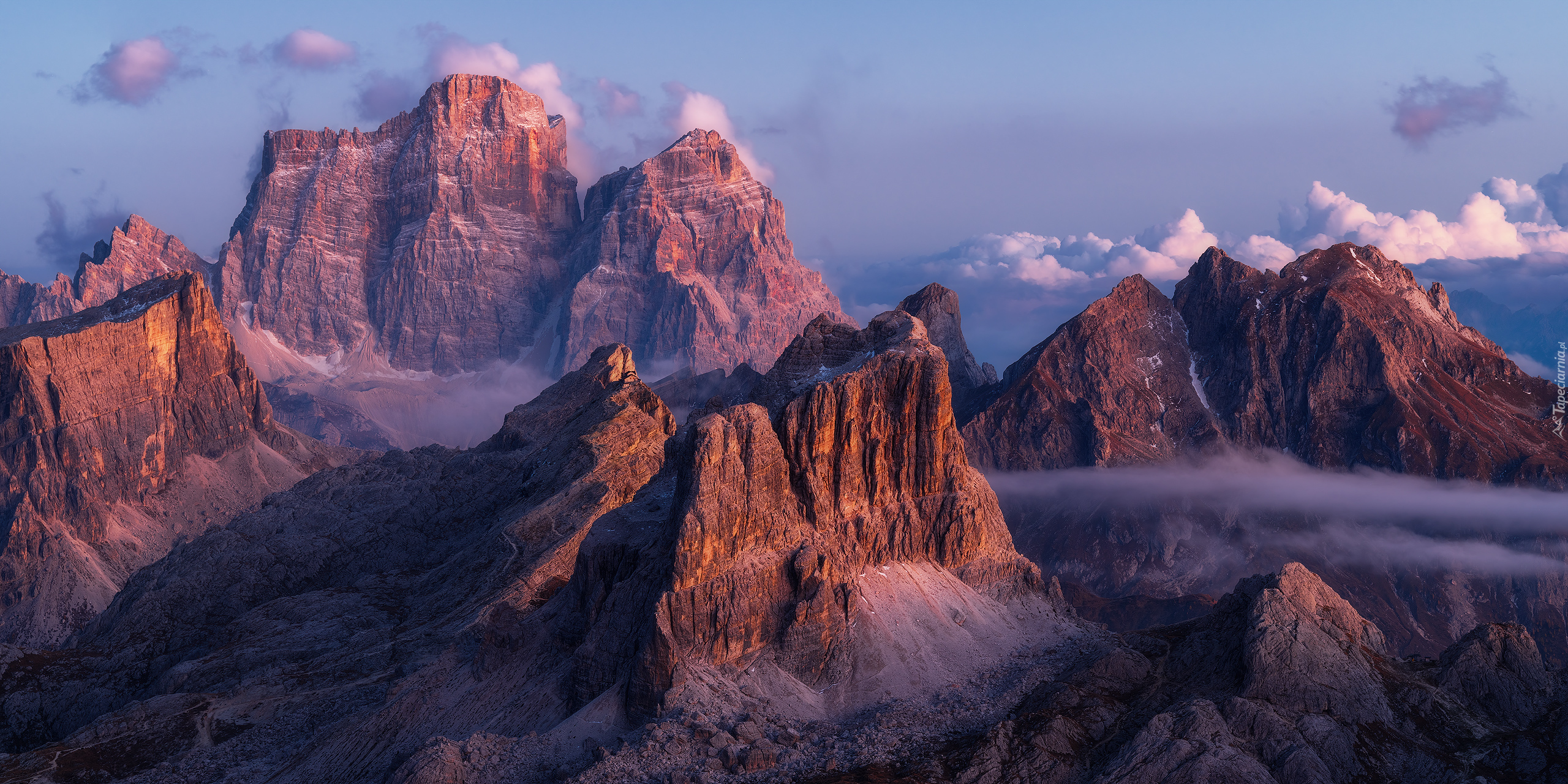 Edytor tapety: Mgła i chmury nad rozświetlonymi górami