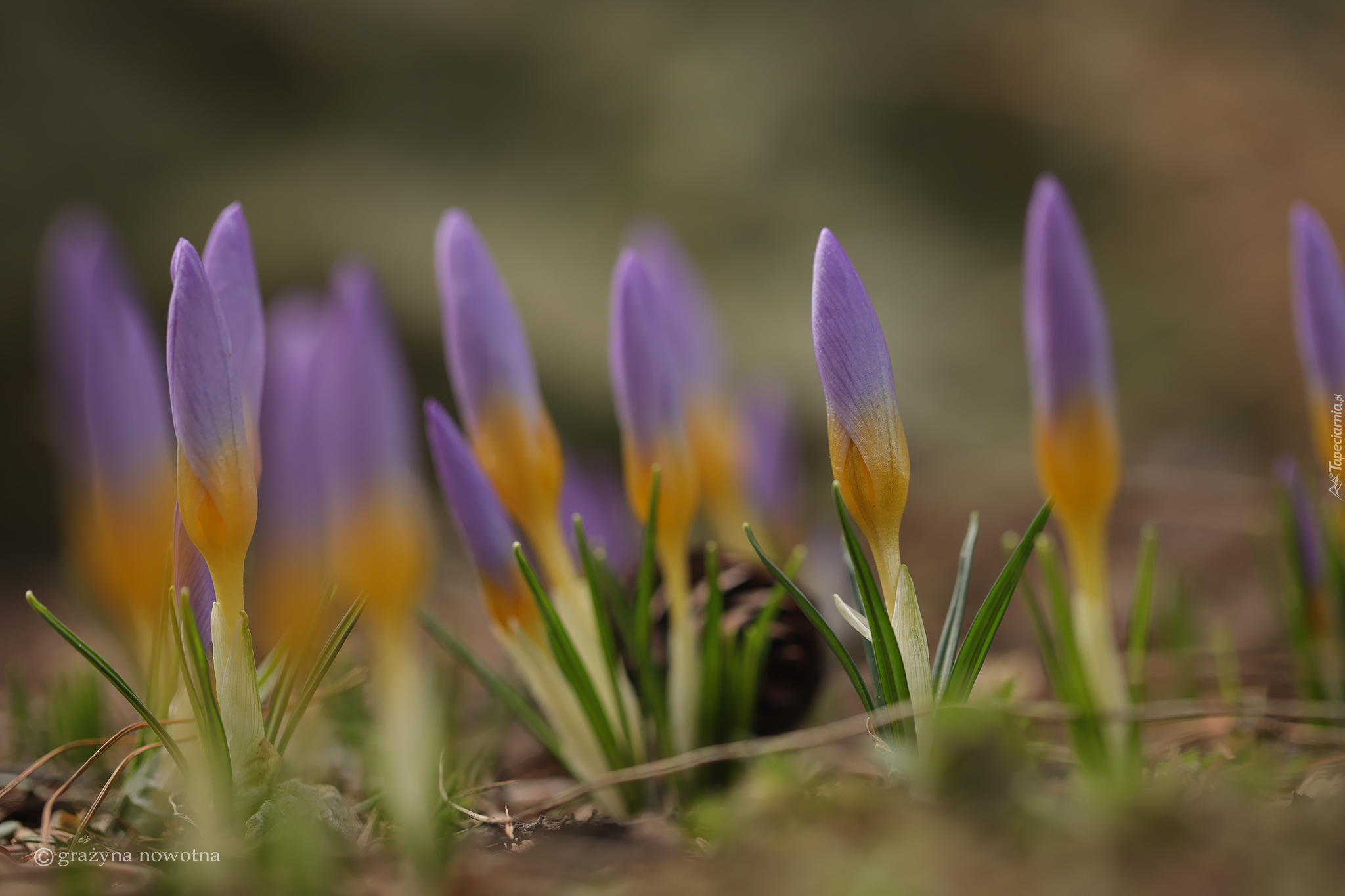 Edytor tapety: Fioletowo-żółte pąki krokusów
