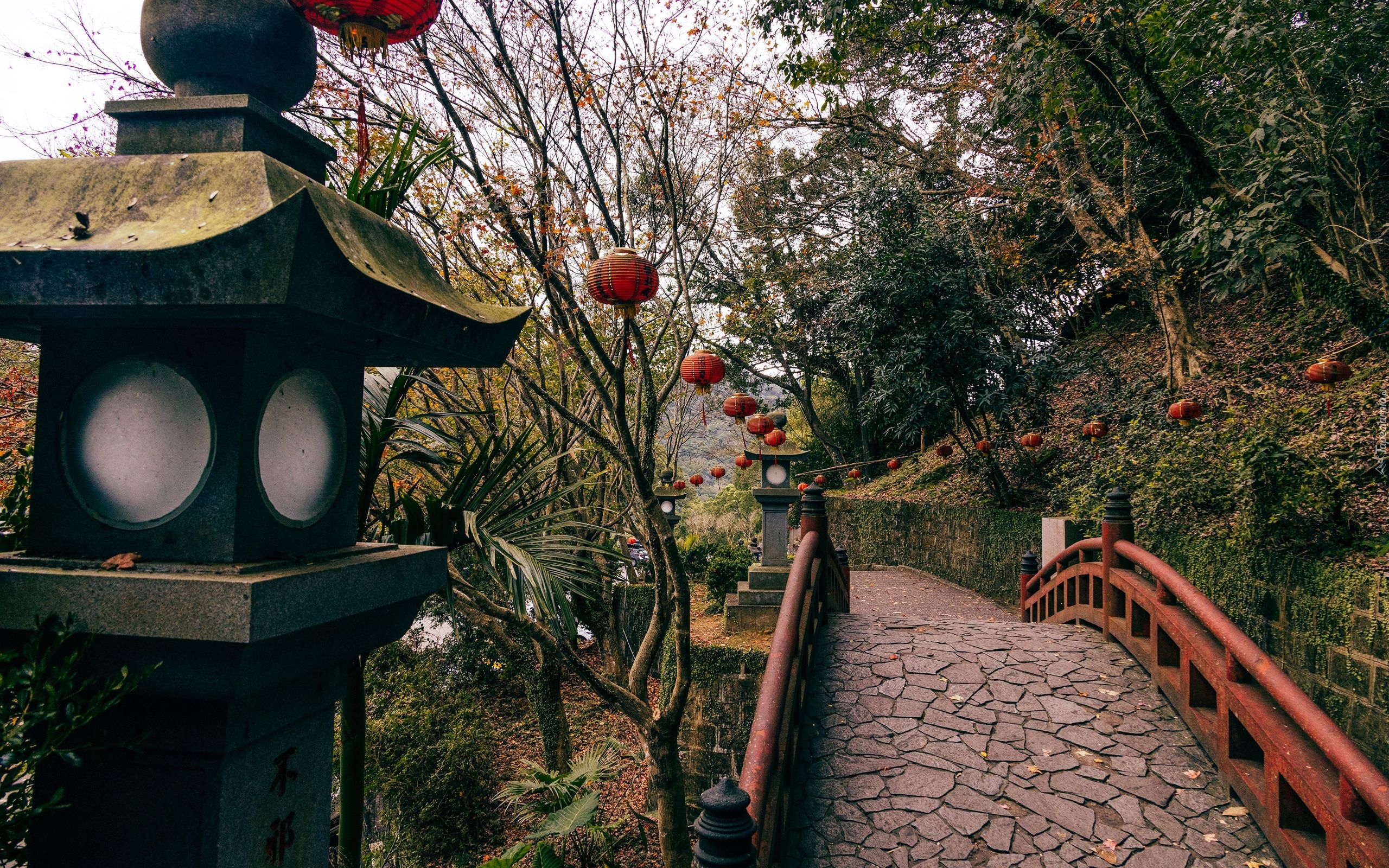 Edytor tapety: Latarnia i lampiony przy mostku