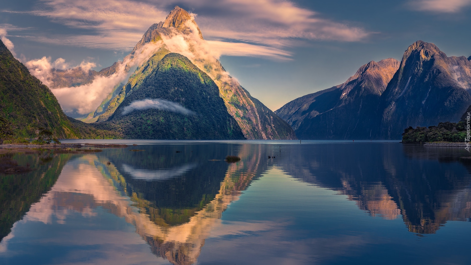 Edytor tapety: Góra Mitre Peak nad Zatoką Milforda