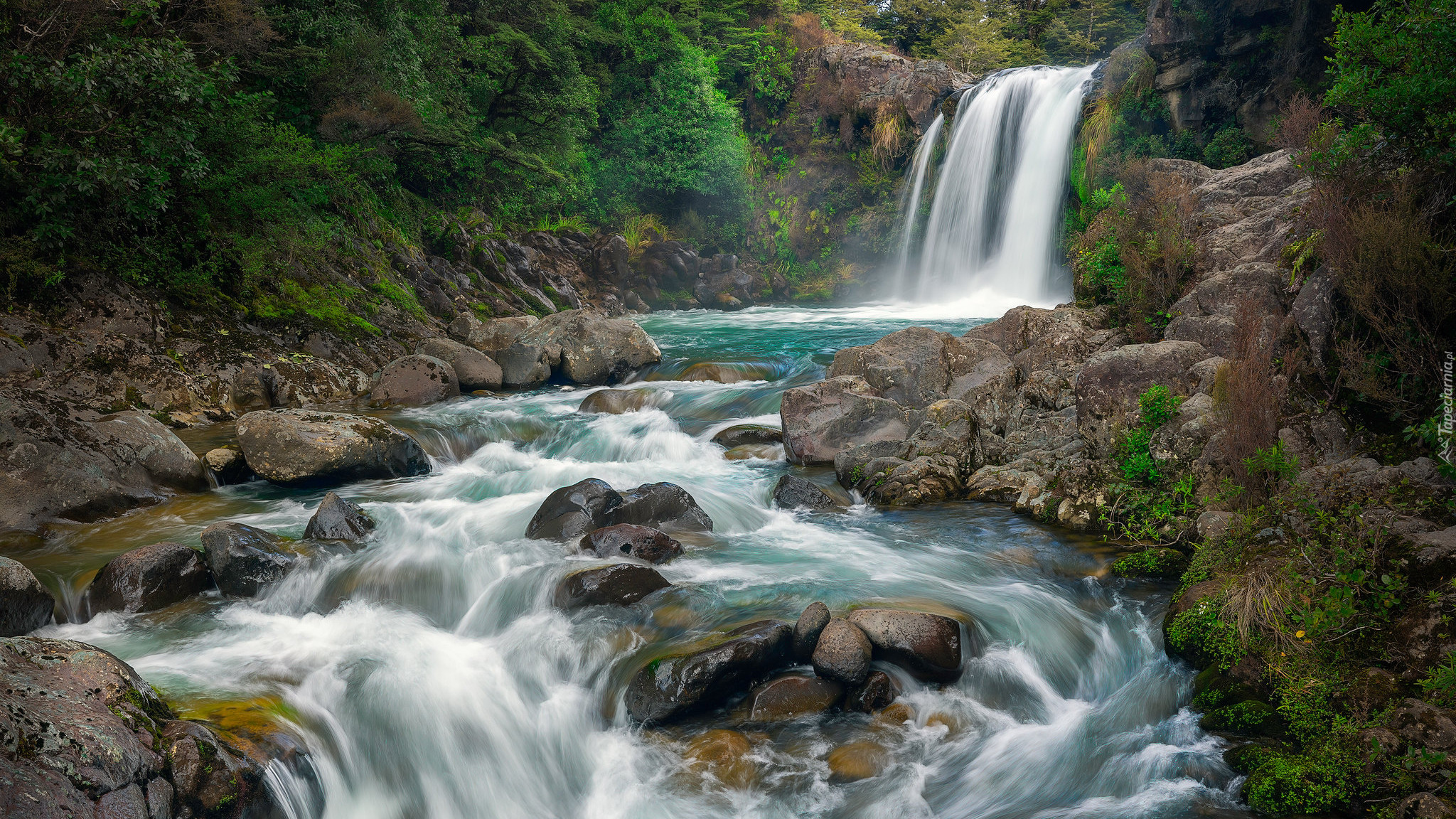 Edytor tapety: Wodospad Tawhai Falls w Nowej Zelandii