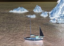 Edytor tapety: Żaglówka w zatoce przy skałach