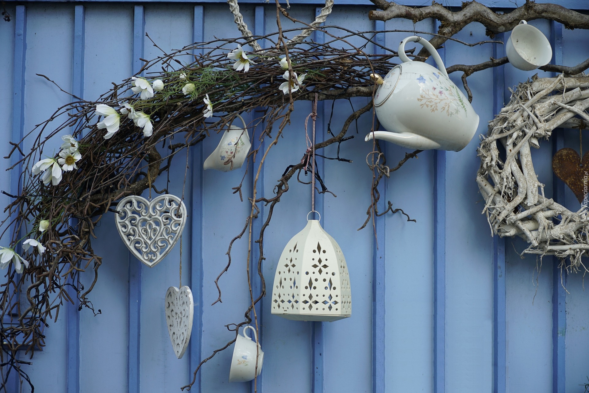 Edytor tapety: Kompozycja z naczyniami i serduszkami na płocie