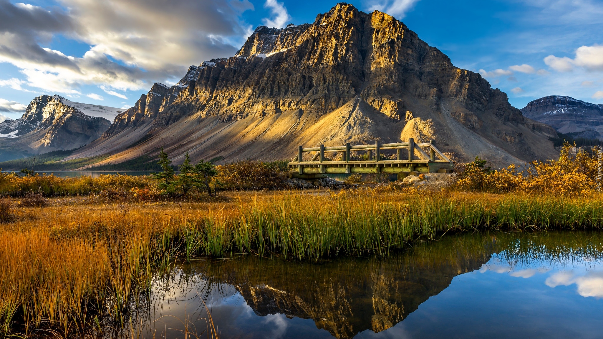 Edytor tapety: Jezioro Bow Lake i góra Crowfoot Mountain
