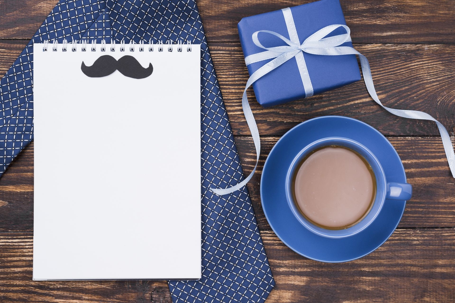 Edytor tapety: Notes obok kawy i prezentu na Dzień Ojca