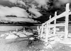 Edytor tapety: Kołki i kamienie na morskiej plaży