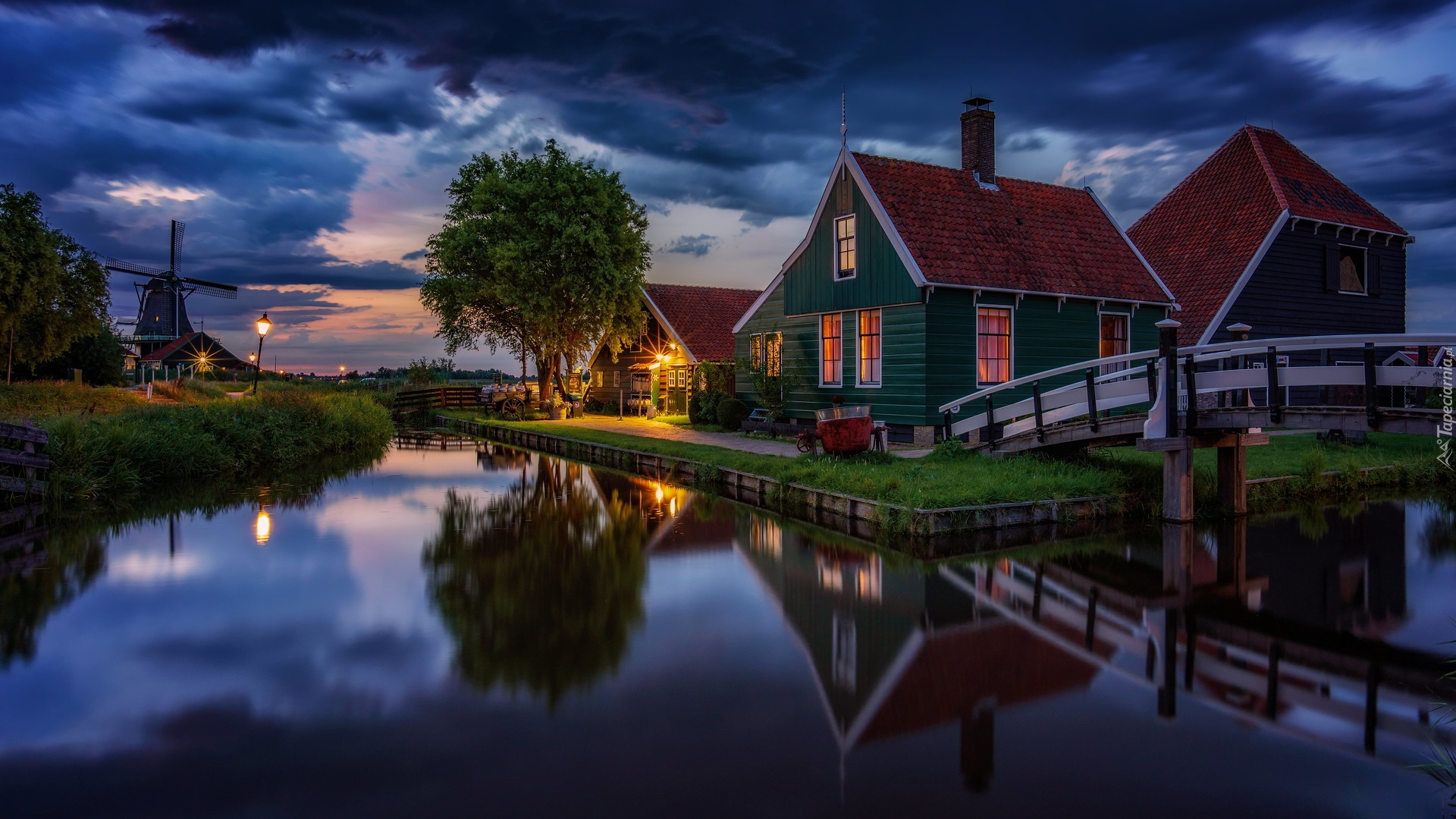 Edytor tapety: Domy w skansenie Zaanse Schans wieczorową porą