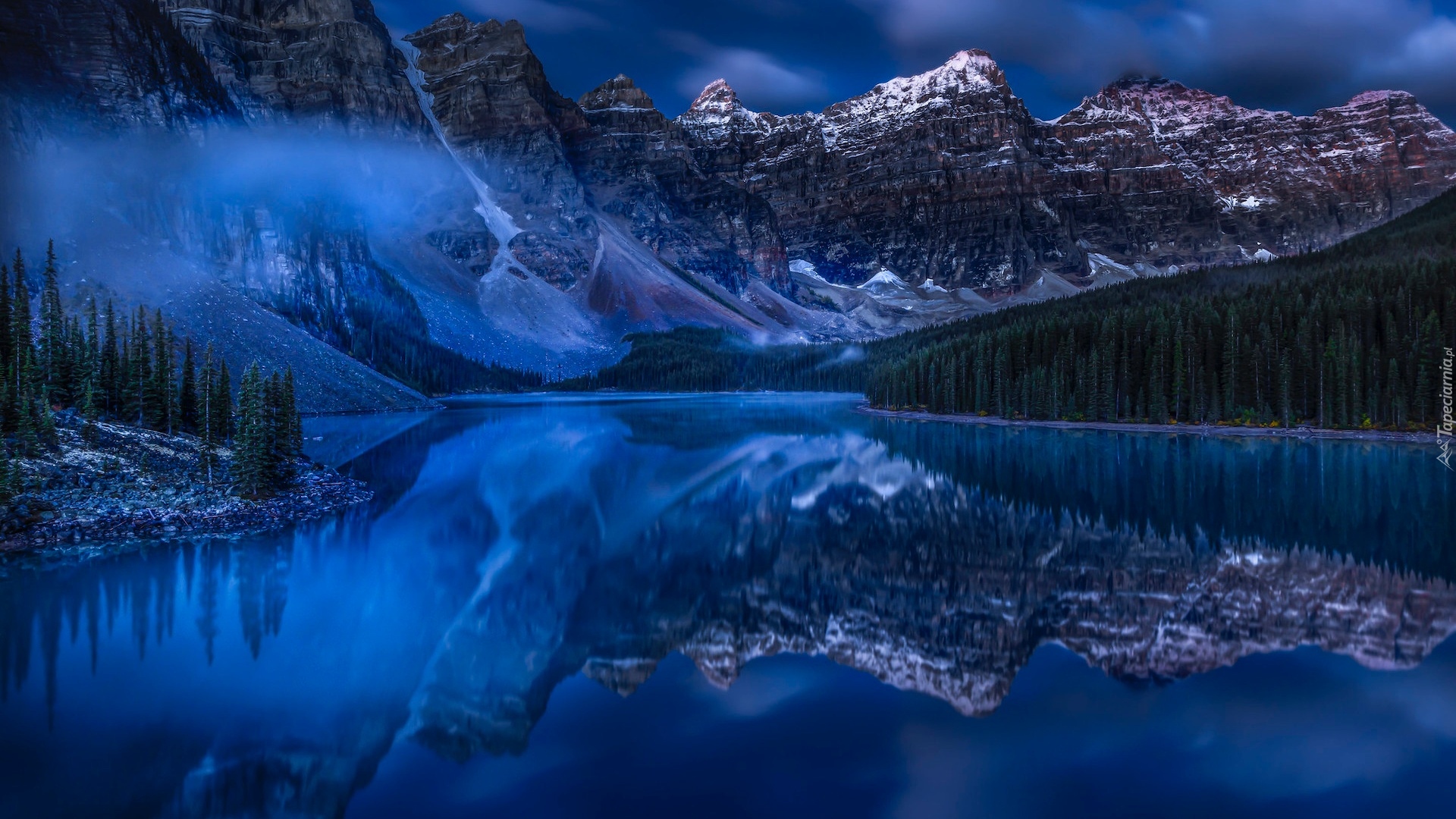 Edytor tapety: Jezioro Moraine o zmroku