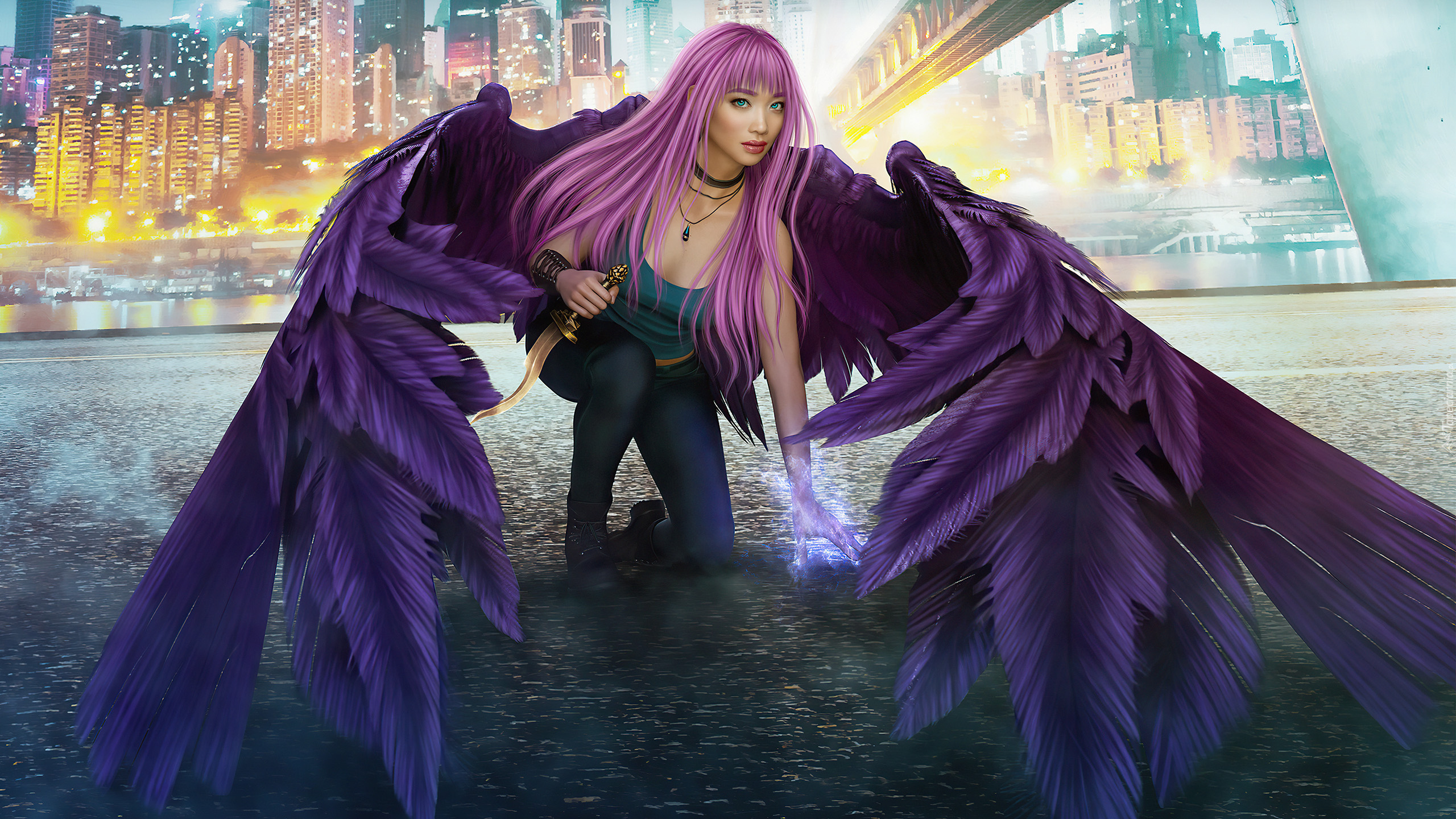 Edytor tapety: Kobieta ze sztyletem i skrzydłami