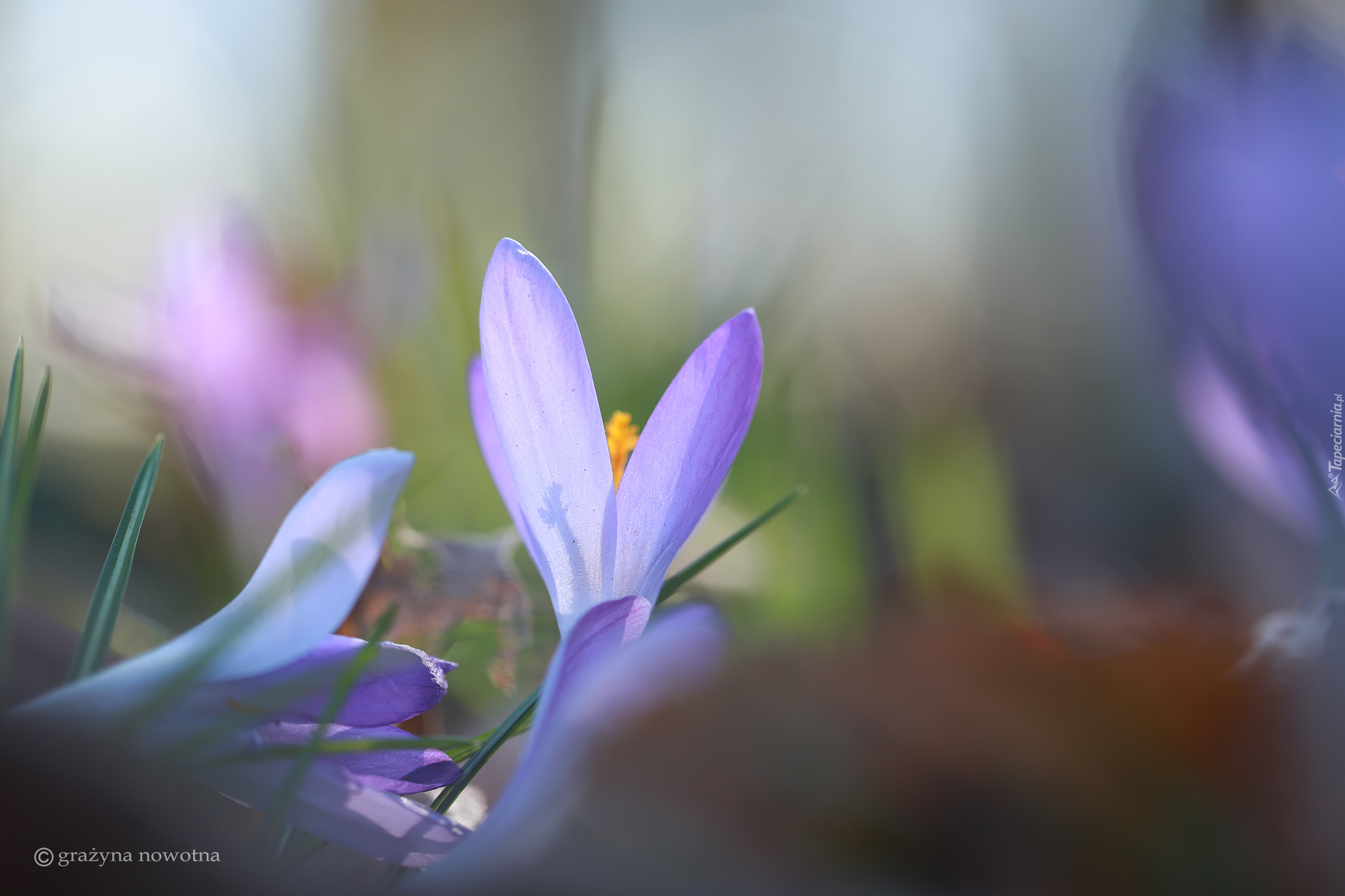 Edytor tapety: Krokusy w słońcu na rozmytym tle