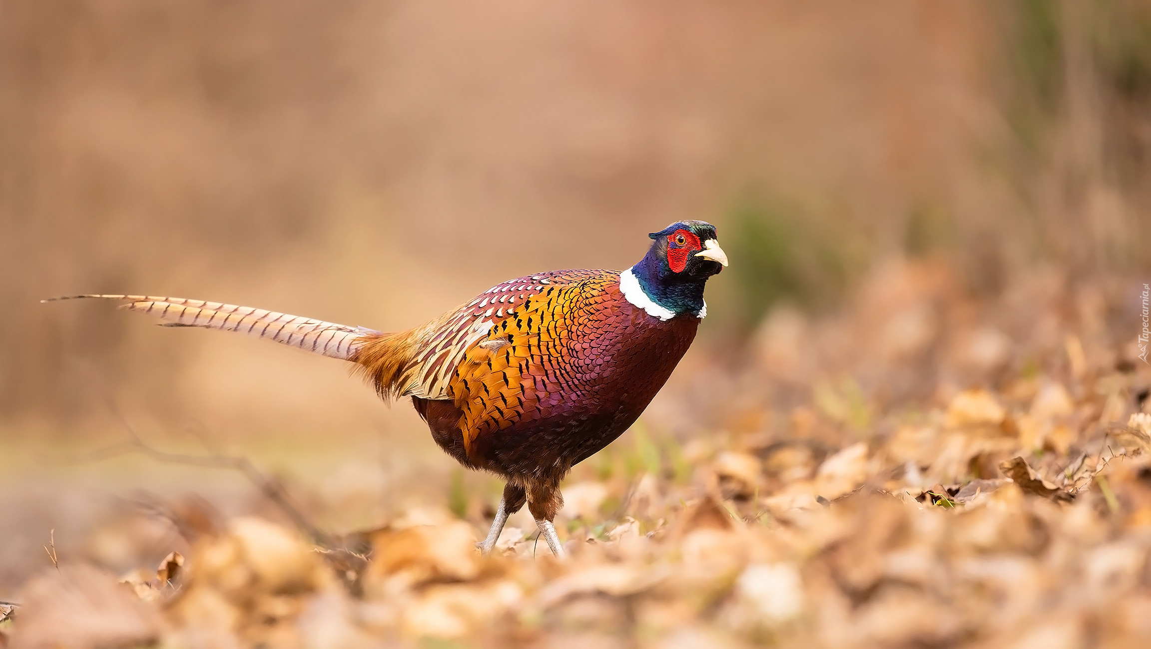 Edytor tapety: Bażant zwyczajny na suchych liściach