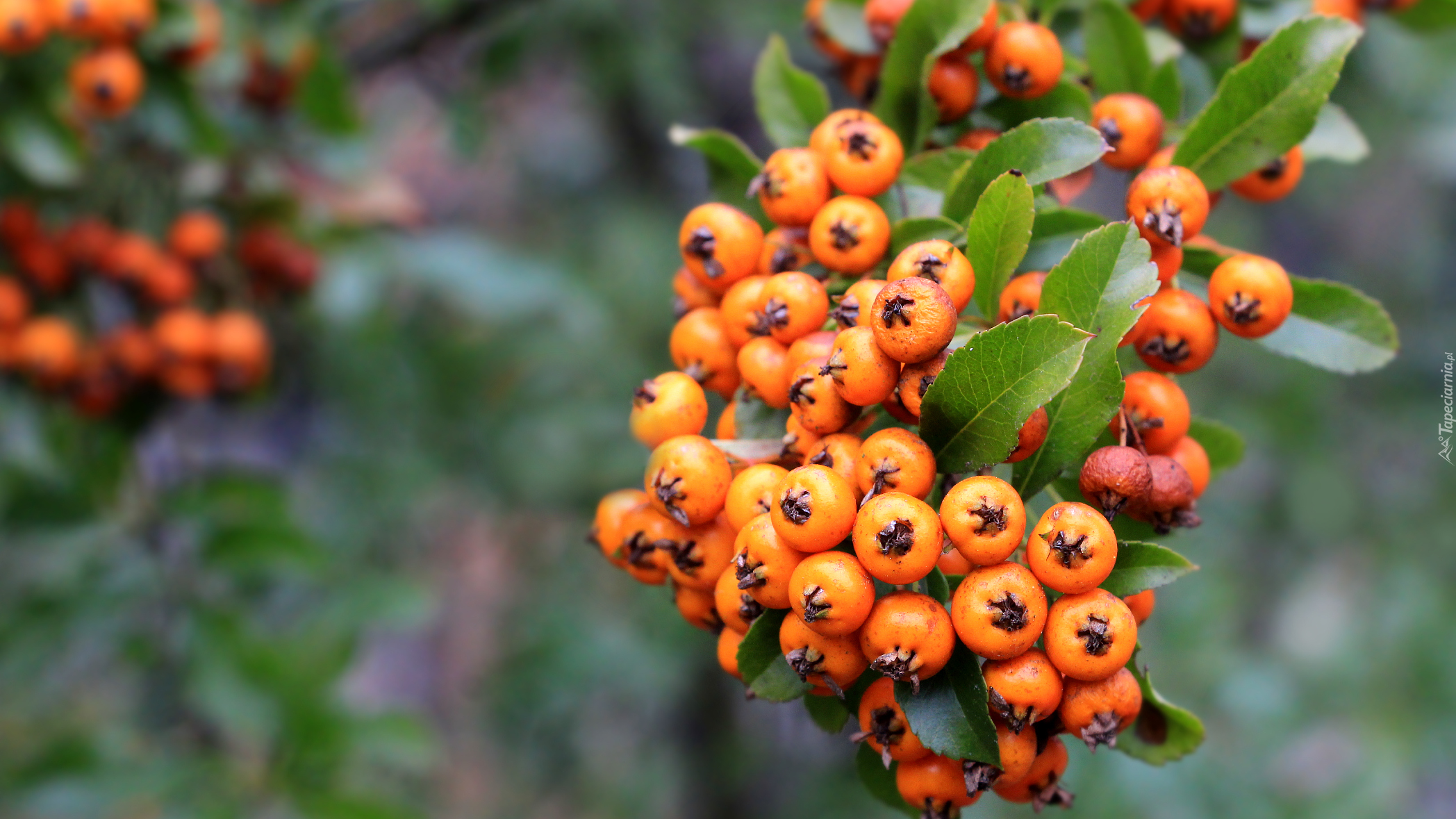 Edytor tapety: Owoce ognika szkarłatnego na gałązce