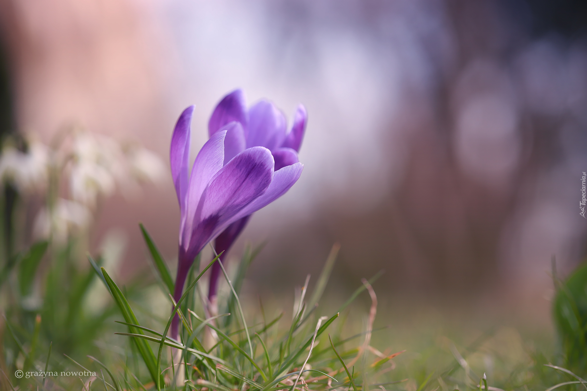 Edytor tapety: Dwa rozświetlone fioletowe krokusy